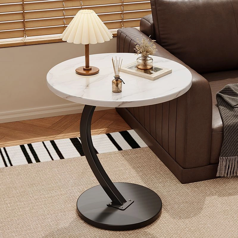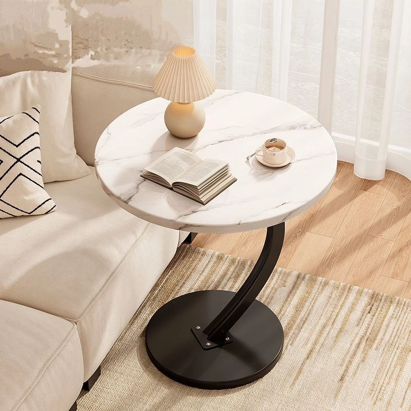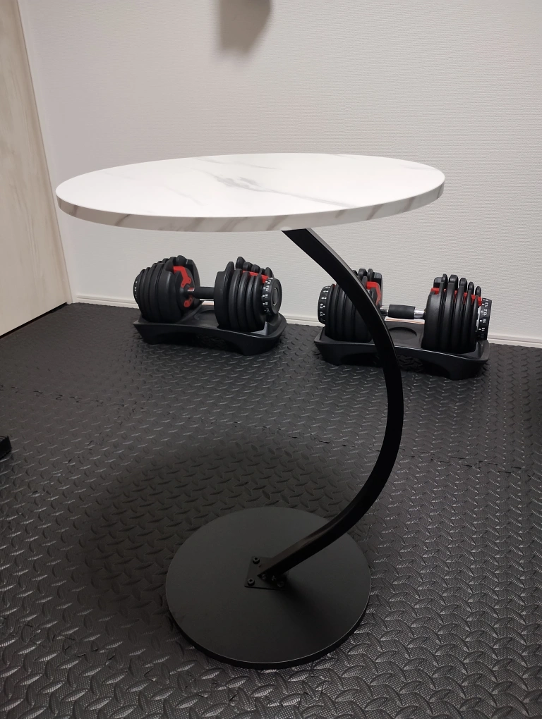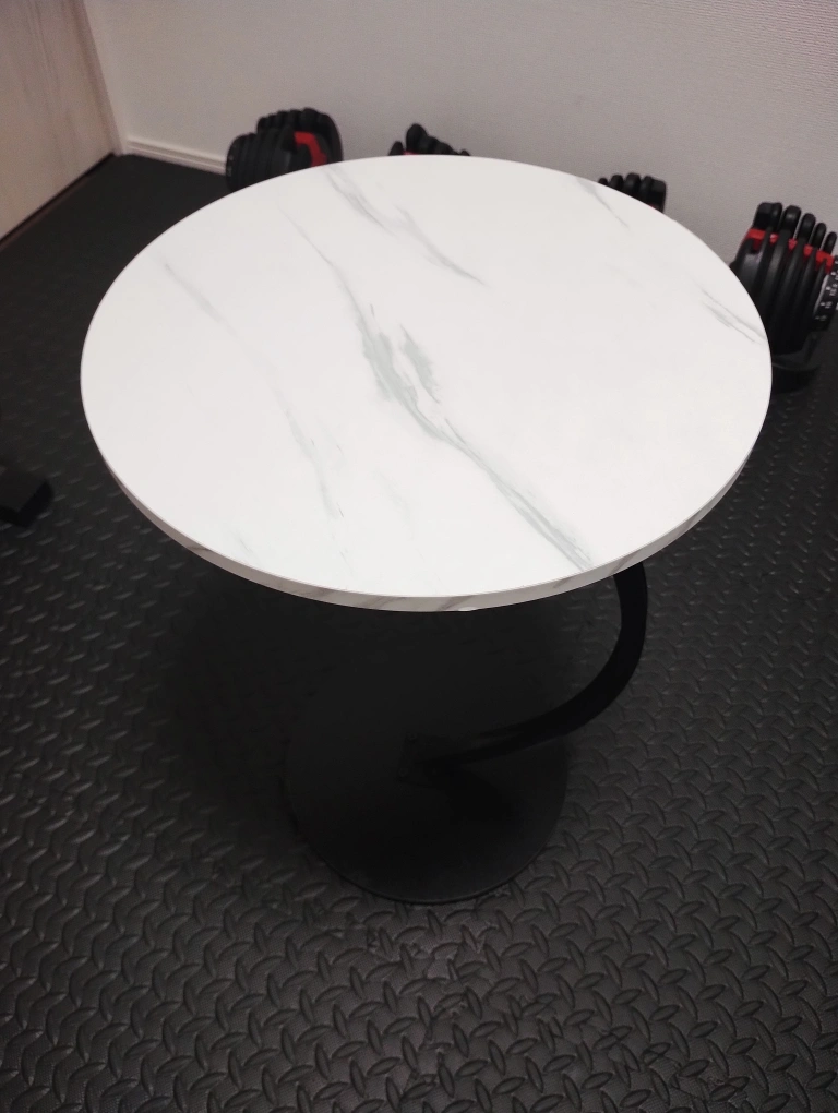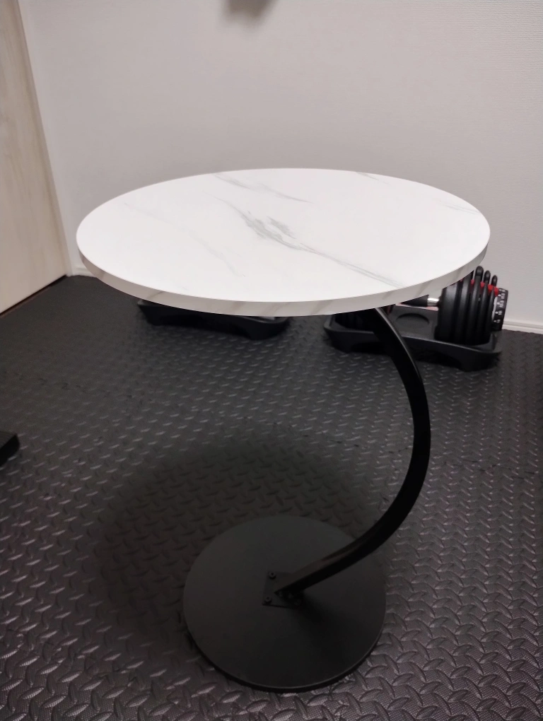 ・天板:大理石柄 ・脚:ブラック ・円形 大理石調の天板がおしゃれな丸型サイドテーブルです。 ソファやベッドサイドに置いて、飲み物や本などを置くのに便利です。 安定感のあるしっかりとした脚で、安心してお使いいただけます。 【サイズ】直径約40cm、高さ約66cm(素人採寸のため、多少の誤差はご了承ください。) 【素材】天板:木、脚:金属 【カラー】天板:ホワイト、脚:ブラック よろしくお願いいたします。