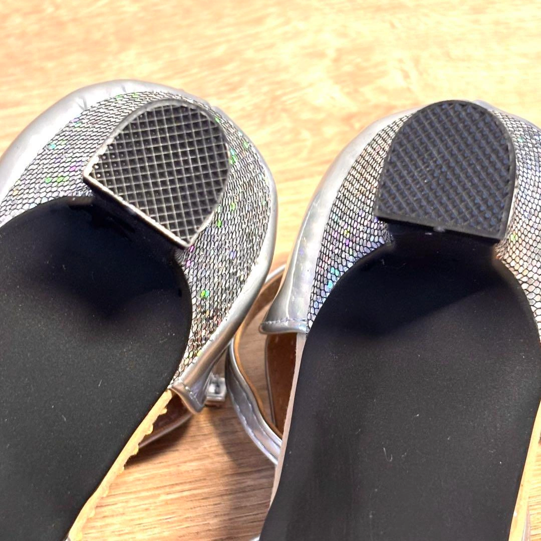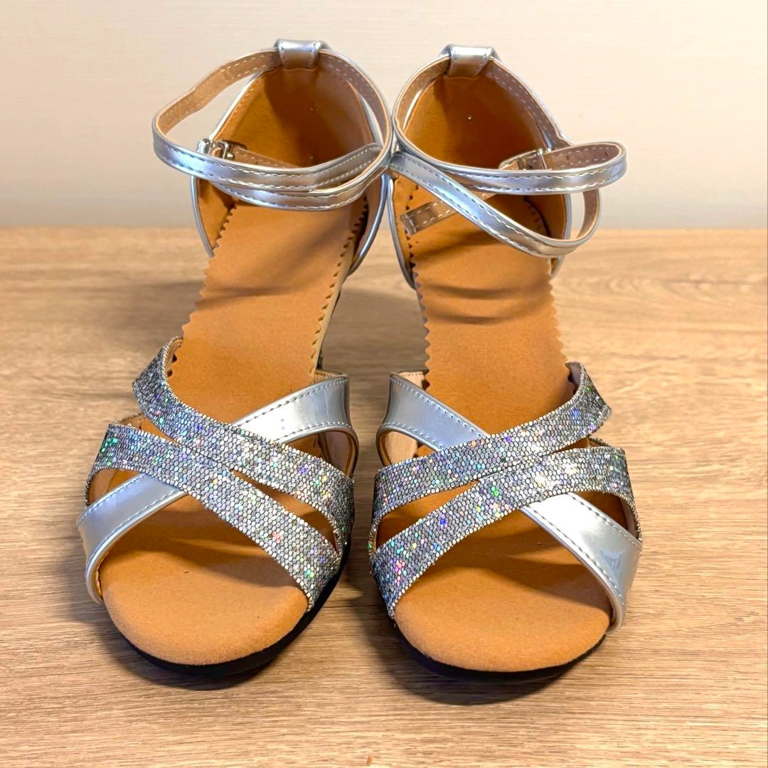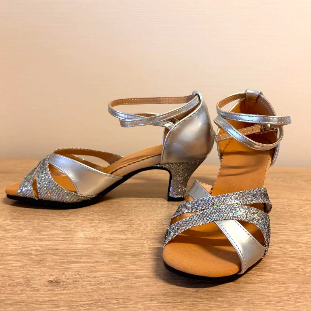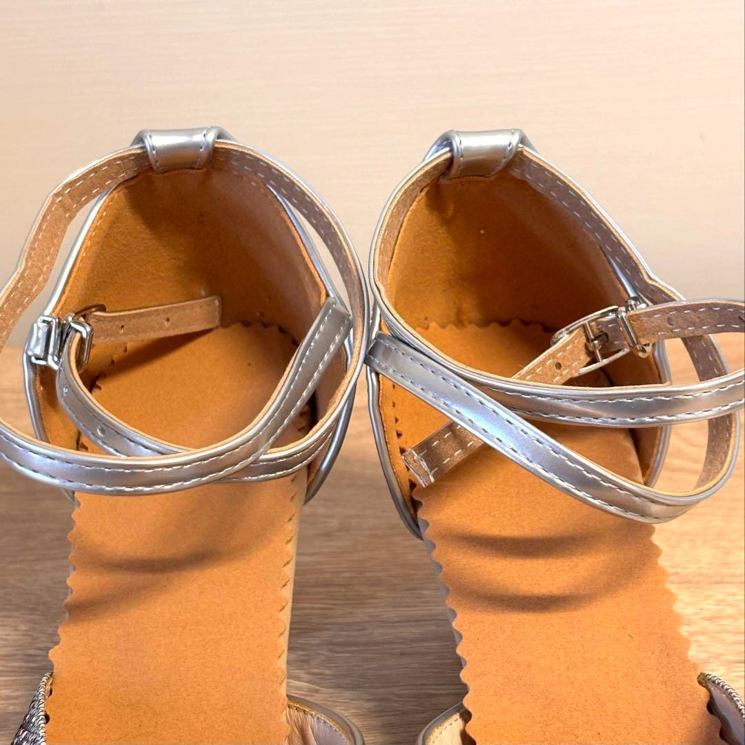 シルバーが煌めくラテンシューズ 足指をしっかりホールドし、 ローヒールで踊りやすいです! ソールはゴム製となっております。 回転の多いサルサ、ラテンよりは、 ジャズやポールダンスなどが向いております。 ステップの練習や、バチャータ等には お使いいただけるかと思います。 その他、室内パーティー用にも最適です。 サイズ37 (ヨーロッパサイズ) 日本サイズは、23.5cmです。 ヒール高さ5.5cm 状態 新品未使用品ですが、保管による 傷など、多少ある場合がございますが、 見た目やお使いいただく分には問題ございません。 ヨーロッパやその他海外にて、 自分用に購入した物で使わなくなったものや、 仕入れしたものを販売しておりす。 当方、ダンスをするので、ダンス関連の 発表会やクラブ、パーティー、練習等で未使用品や 数回着用のみの衣類も出品しております。 宜しければ、ご覧下さい ご希望の方はお気軽にご連絡ください。