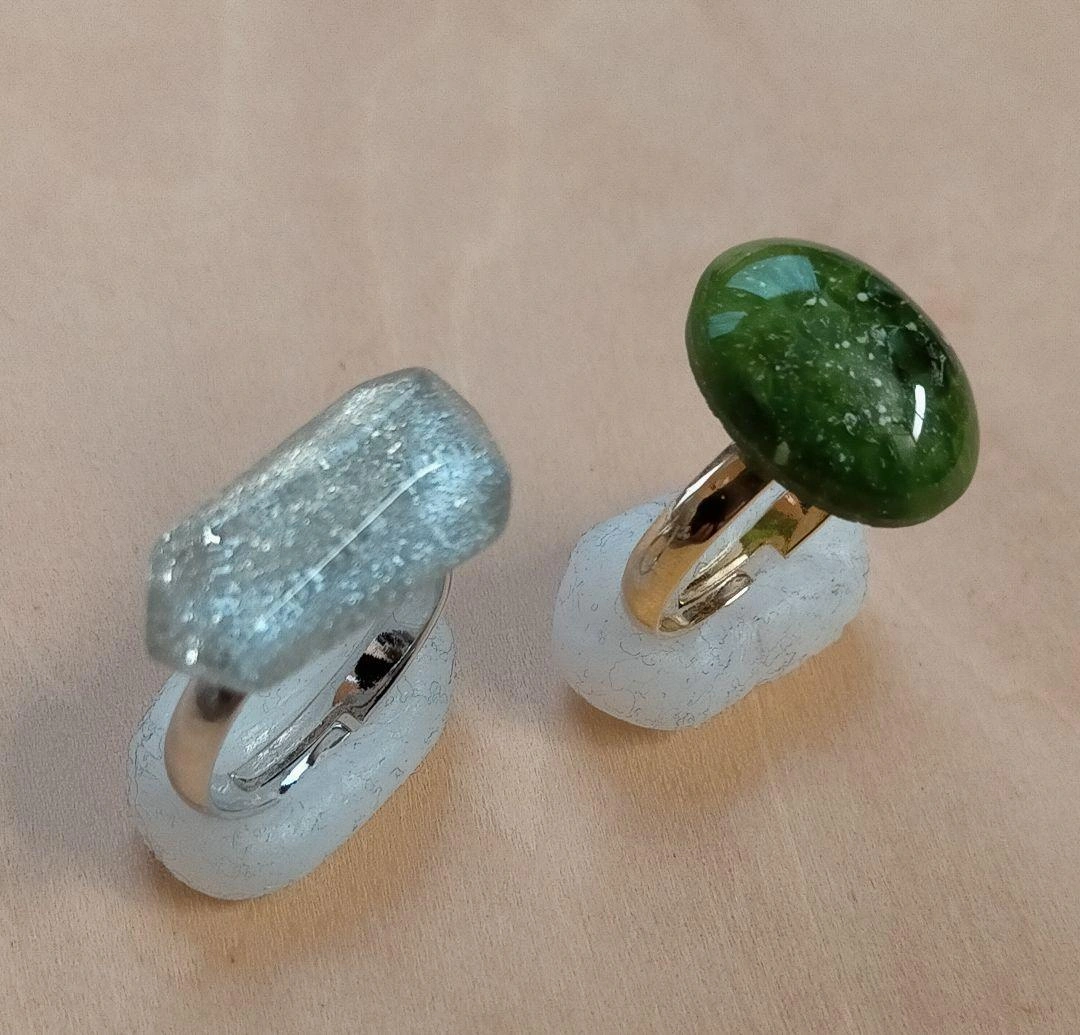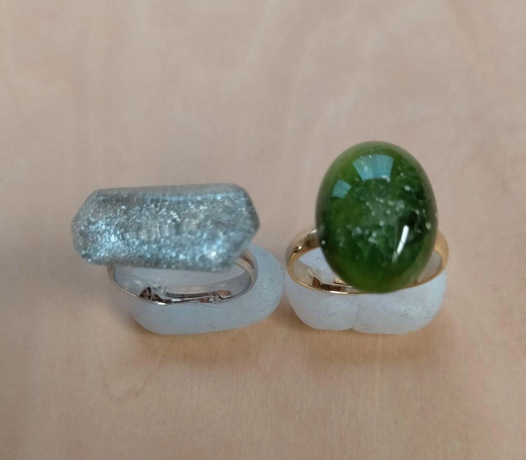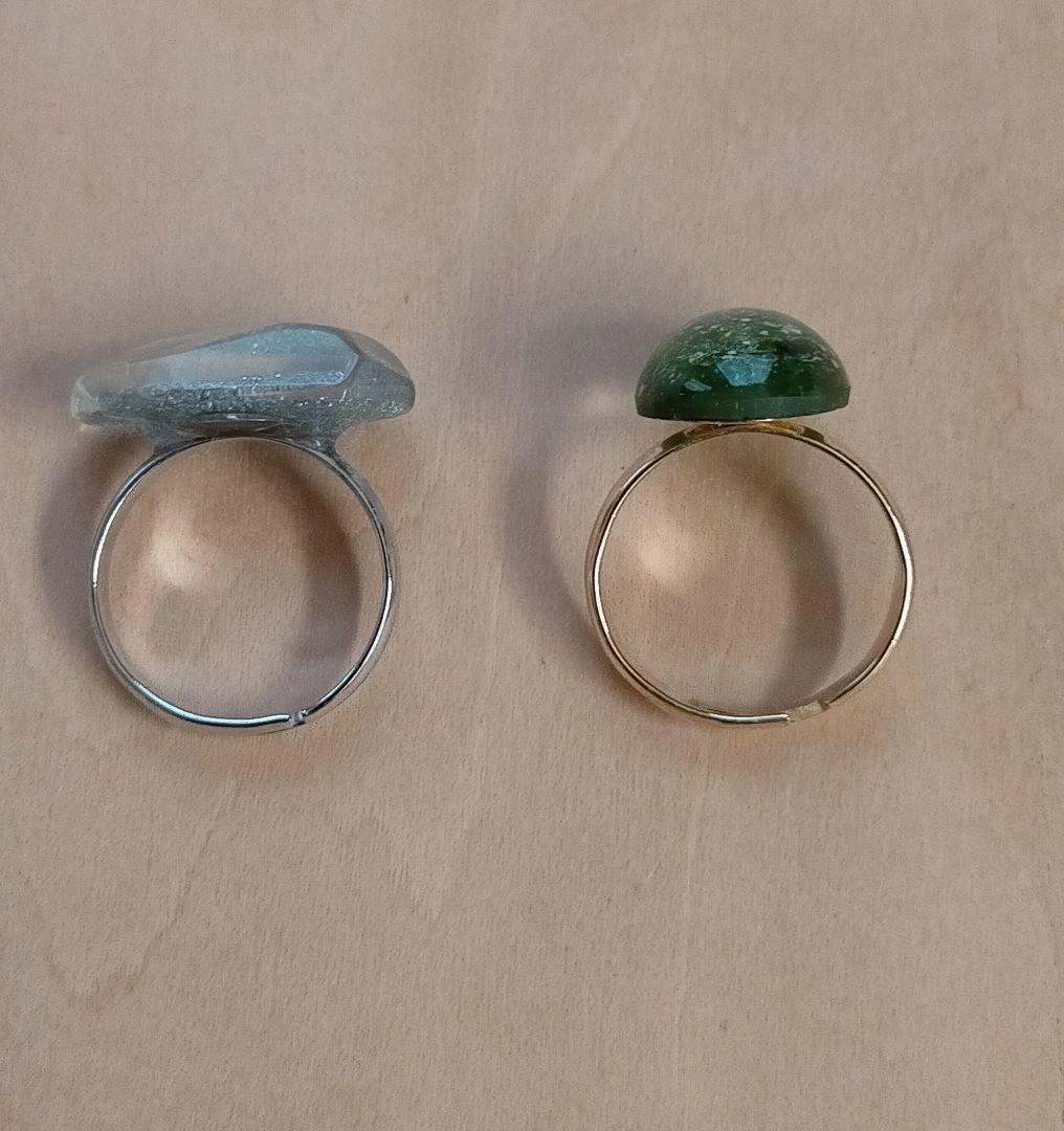 着物に合わせようと購入しましたが、なかなか使う機会がないため出品します。 ・シルバー 多角形 2×1.4cm アバンギャルドなイメージです。 ・ゴールド オーバル 1.8×1.2cm 濃い翡翠のようなイメージです。 ともにフリーサイズで調整可能です。 材質はプラスチックのような感じです。 インポート雑貨屋で購入しました。 セットでいかがでしょうか。 ご希望の方はお気軽にご連絡ください。
