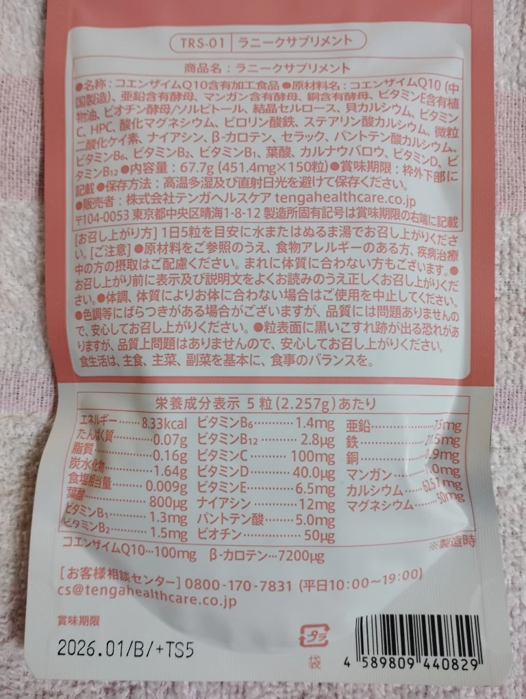 【情報】 ブランド:テンガヘルスケア 商品名:ラニークサプリメント 内容量:67.7g(451.4mg×150粒) 定価:4298円 【状態】 新品未開封 【その他】 賞味期限:2026.01 同時出品物との同時購入歓迎です! (切手、雑貨、衣類など) 受け渡しは溝の口駅、高津駅、津田山駅周辺にて。 自宅近くのコンビニまで来ていただける場合は夜間の受け渡しも可能です。