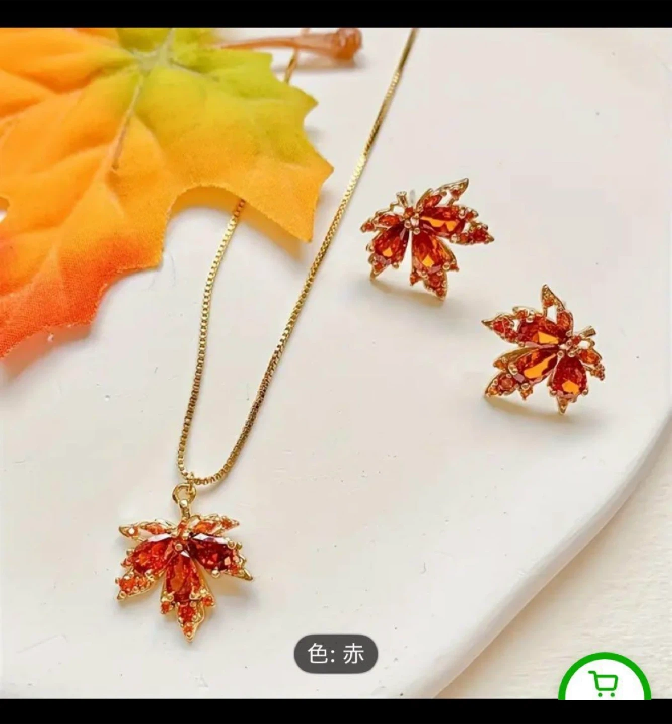 新品⭕️可愛い3点セット、赤い葉のデザイン ネックレスとピアス
