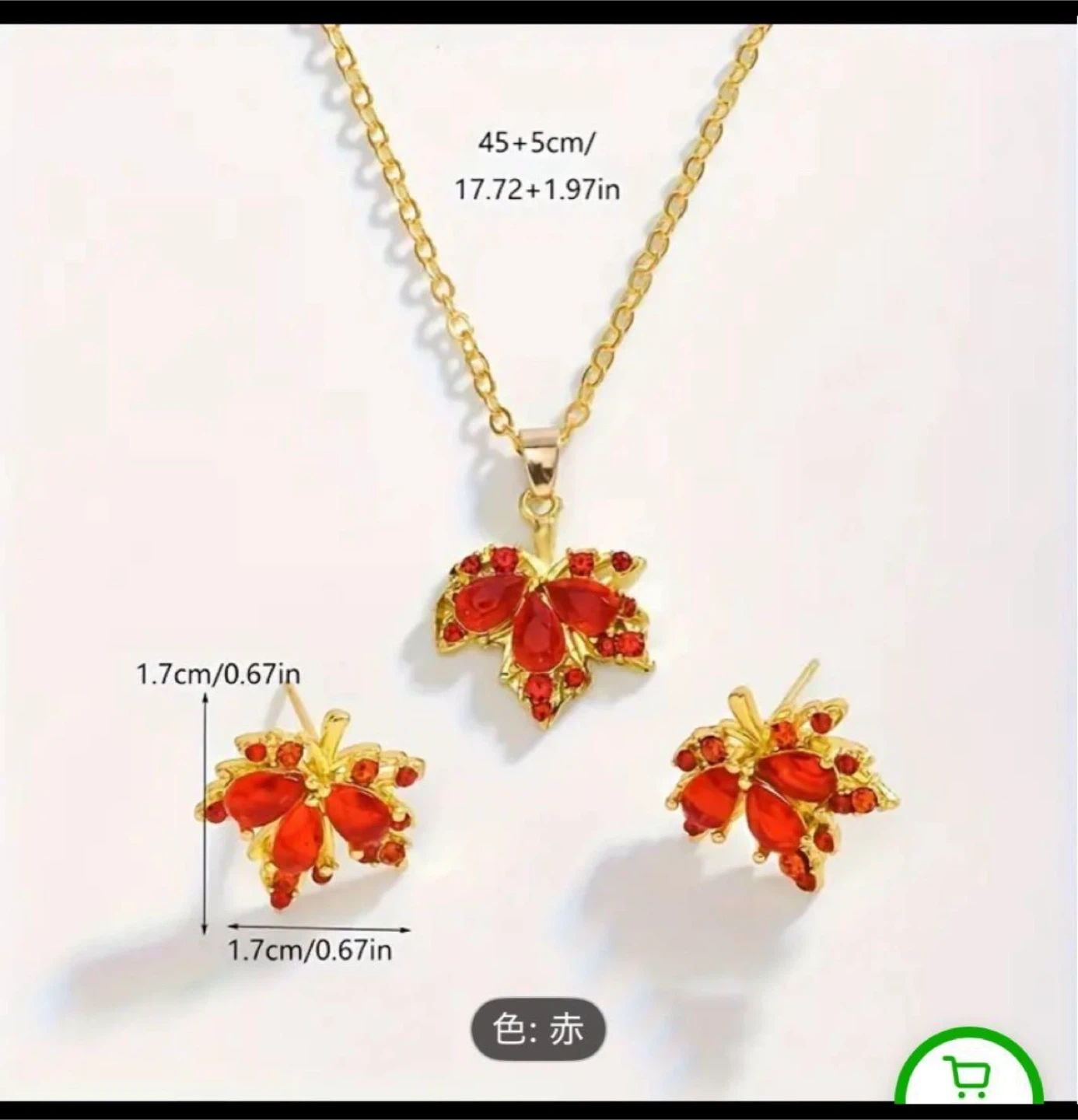 ネックレスとピアスのセットです。 ・デザイン:紅葉モチーフ ・色:赤 ・ネックレスの長さ:45+5cm / 17.72+1.97in ・ピアスのサイズ:1.7cm/0.67in新品であることをご了承ください。