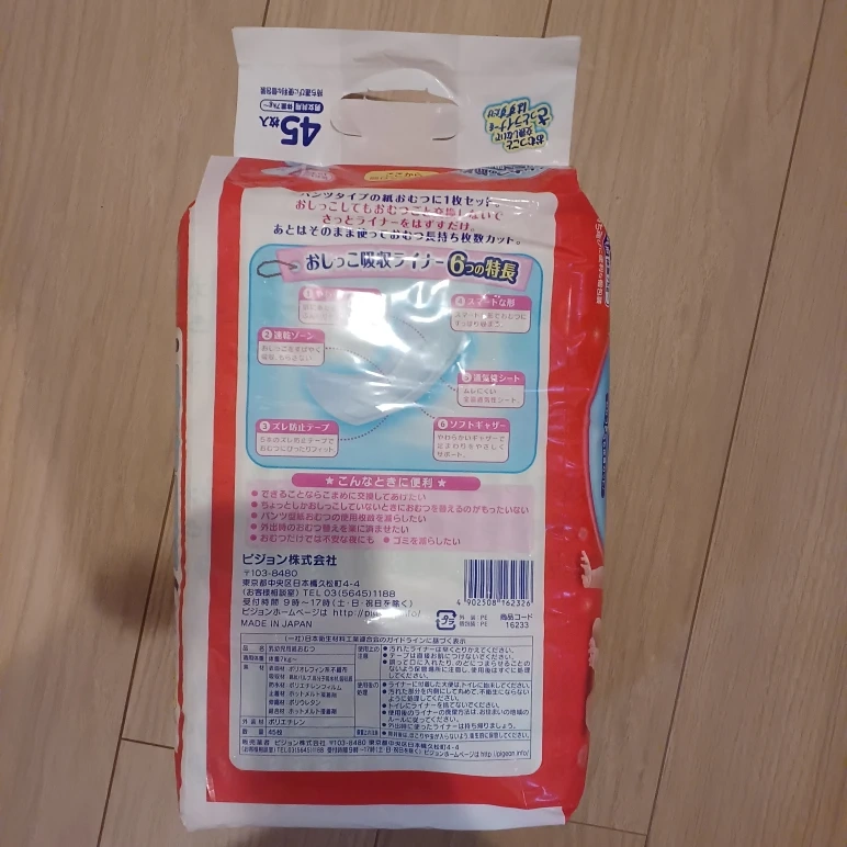 ピジョンのおしっこ吸収ライナー45枚入りです。 未開封新品 廃盤品なので店頭にはもう並んでいないそうです。