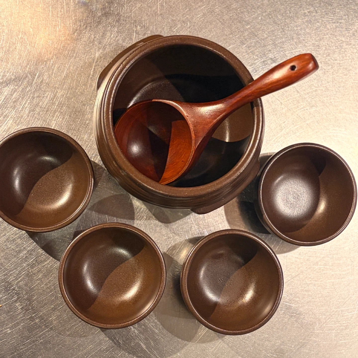 【新品.未使用】マッコリ壺セット 韓国ドラマでよく見る、マッコリ用の壺セットです。 韓国の伝統酒「マッコリ」好きにはたまらない!場が一層盛り上がること間違いなし! 韓国の伝統酒「マッコリ」を楽しむための専用杯とひしゃくのセットです。 韓国料理でのホームパーティーにオススメ! 韓国料理とマッコリをお楽しみ下さい😊 【商品内容】 ・茶碗4個 ・マッコリ壺(1000ml)1個 ・木製杓子 1個 【サイズ】外寸 蕾 /口径14㎝×高さ10㎝ お椀/口径9.5×高さ5.5㎝ 新品未使用ですが、自宅保管である言葉をご了承下さい。 傷などありません。