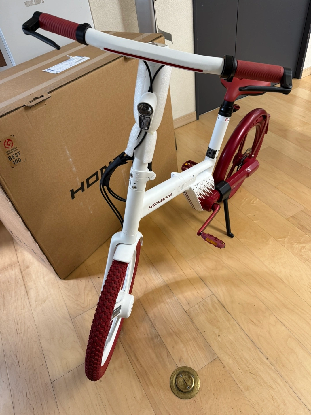 HONBIKE 電動アシスト自転車 STONE(空気入れ付き) カラー:ホワイト×レッド 電動アシスト自転車「HONBIKE STONE」を出品します。 本商品は**新品同様**の状態で、**検品と軽く試乗したのみ**となっております。 さらに、未使用の**高性能フットポンプ(空気入れ)**もセットでお付けいたします! 【セット内容】 ・HONBIKE STONE(ホワイト×レッド)1台 ・HONBIKEロゴ入り フットポンプ(空気圧計付き・未使用) 【主な特徴】 ・チェーンレス設計で快適&静音走行 ・5段階の電動アシストモード搭載 ・前後ディスクブレーキで安心の制動力 ・工具不要で簡単折りたたみ可能 ・最大航続距離:約100km(モードにより変動) ・USB充電ポート付き(スマホの充電も可能) 【おすすめポイント】 ✔️ 通勤・通学・街乗りにも最適な軽量&スマートデザイン ✔️ ポンプ付きで、空気圧の管理もすぐに対応可能◎ 【状態】 ・新品同様(検品・試乗のみ) ・自宅保管(箱付き) ・※防犯登録は未実施のため、ご購入後にお近くの販売店にてご登録をお願いいたします。 【希望価格】 ¥179,000(税込) ※市場価格よりお得に設定しております! 【受け渡し場所】 表参道駅周辺または南青山付近にて直接お渡し可能な方 ご興味のある方はぜひお気軽にご連絡ください。 早い者勝ちとなりますので、お早めにどうぞ!🚲✨