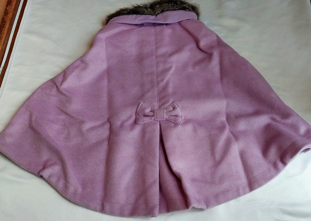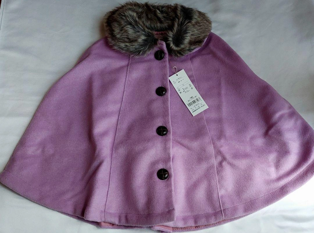 あたたかさla poche biscuitのポンチョになります。 裾は画像のように左右留められるようになってます。 自宅保管につき、多少の畳シワがあります。 ご了承の上、ご購入お願いします。 【size】95センチ 【寸法】 身長...95~115センチ 着丈...約42センチ 【素材】表...毛50% ポリエステル50% 裏地...ポリエステ ル100% ファー部分...アクリル80% ポリエステル20% 定価 5292円(税込) ご希望の方はお気軽にご連絡ください。
