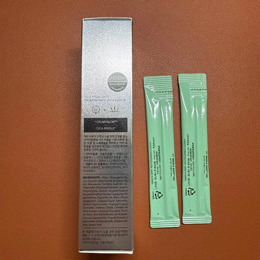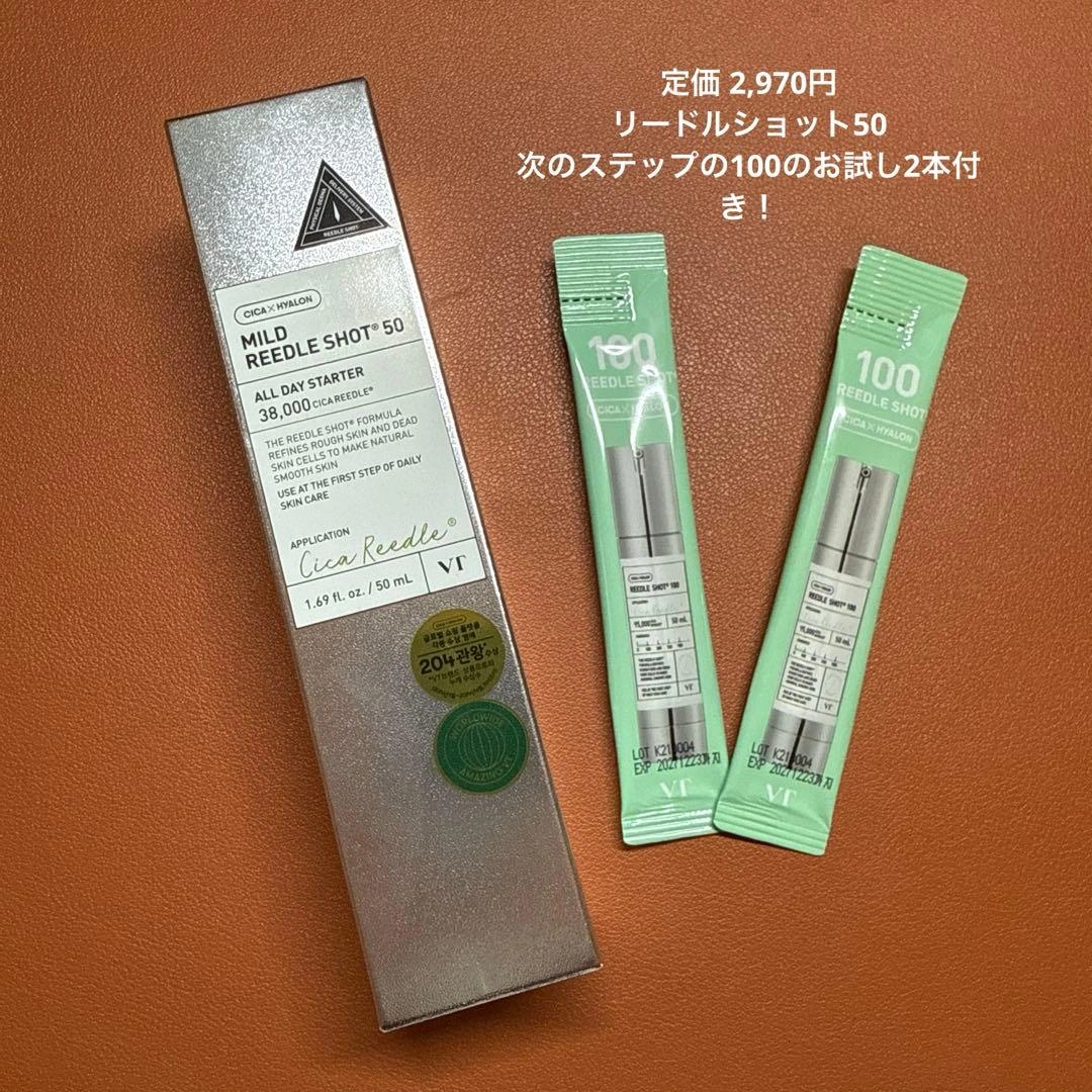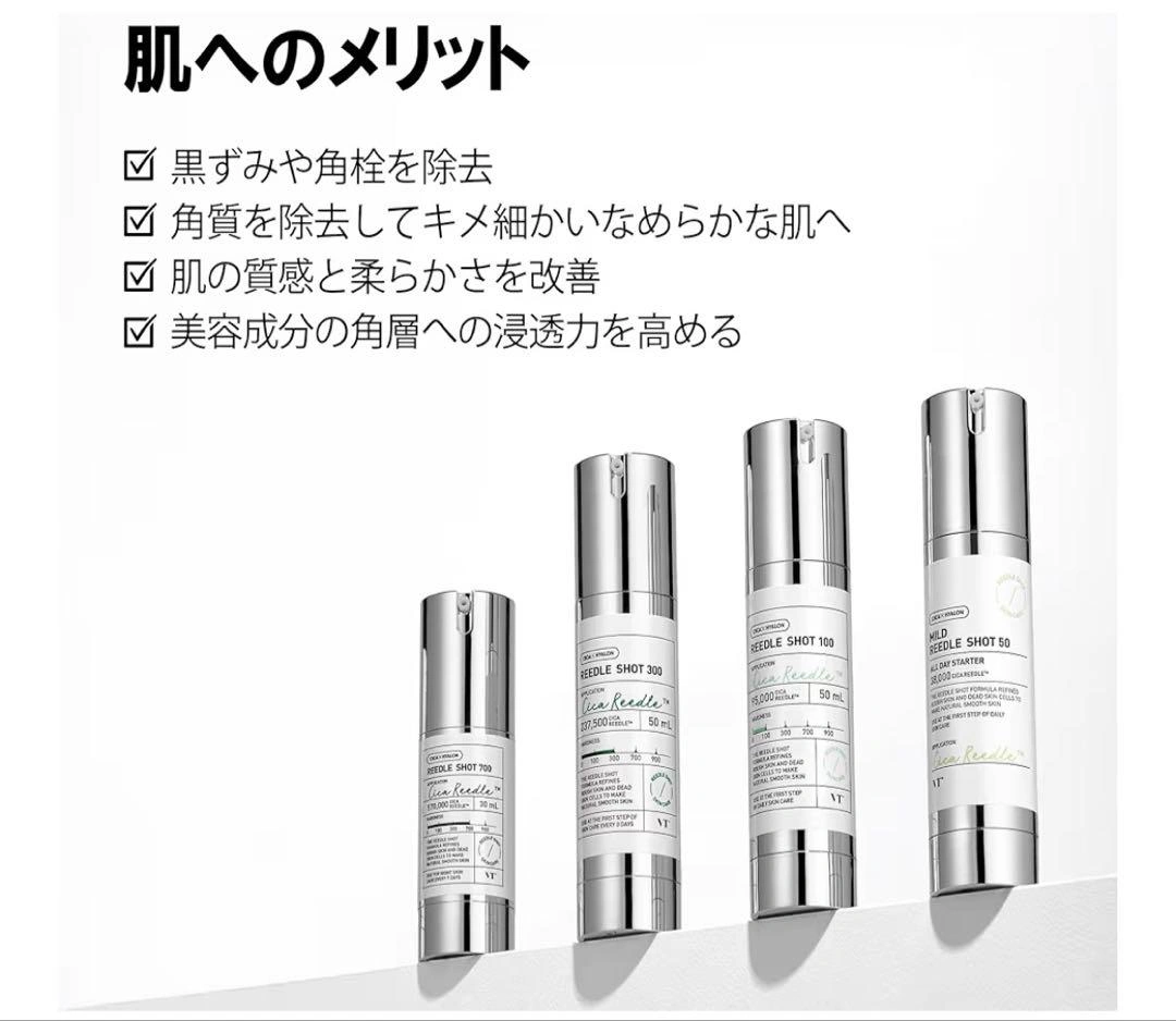 VT マイルドニードルショット50、新品未使用です。 おまけで100のリードルショットのサンプルも2つお付けします! 定価 2,970円 購入時期は2025年10月 使用期限2028.1.13 38,000個のマイクロニードルを使用したオールデイスタートのブースターです。 - 製品名: MILD REEDLE SHOT 50 - 内容量: 1.4 FL.OZ (40ml) - 用途: オールデイスタート - 特徴: 38,000個のマイクロニードル ご覧いただきありがとうございます。