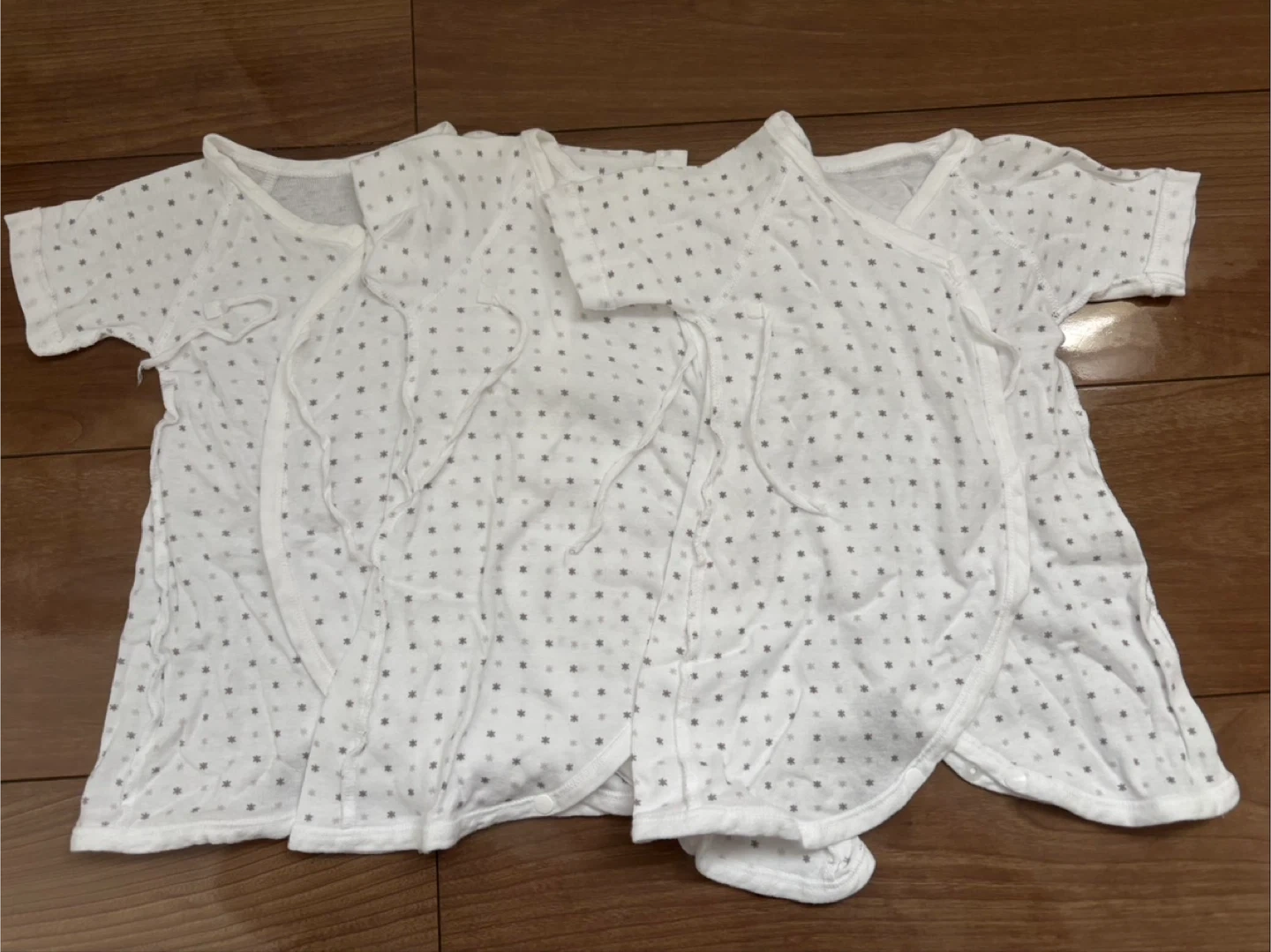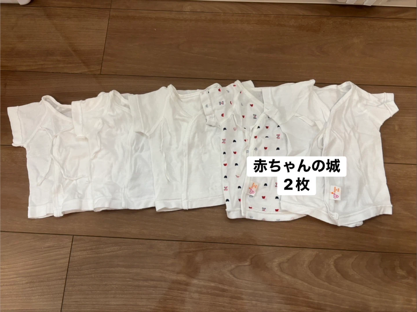 赤ちゃんノ城とベビザラスの肌着セットです。 ・短肌着とコンビ肌着各5セットずつ(赤ちゃんの城2セット・ベビザラス3セット) ・サイズ:40〜50 ・定価:11,000 ・状態:7月に購入し出産後1ヶ月半ほど使用。ベビザラスのものに関しては結ぶ紐がクルクルになってしまっていますが使用する分には問題ありません。 確認はしておりますが、素人保管・中古品であることご了承ください。