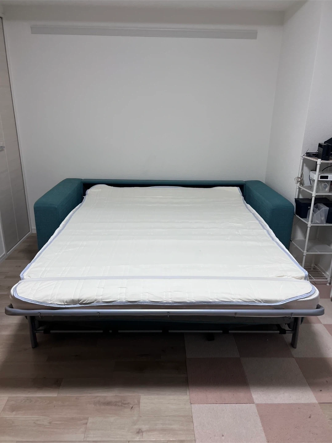 BoConcept ソファベッド(200×94×61cm) デンマークの人気ブランド BoConcept(ボーコンセプト) のソファベッドです。 しっかりとした作りで、重さは約100kgと非常に安定感があります。 座り心地・寝心地ともに快適で、高級感のあるデザインです。 搬入の際は、幅70cm以上のドアがあると安心です。 マットレスプロテクターを使用していたため清潔な状態ですが、 経年による多少のシミがあります(写真をご確認ください)。 サイズ:200cm × 94cm × 61cm 重量:約100kg 中古品であることをご理解のうえご購入ください。 ※重たいので、ガタイの良い男性最低でも2人必須です。 ※ご自身での運搬をお願いします。