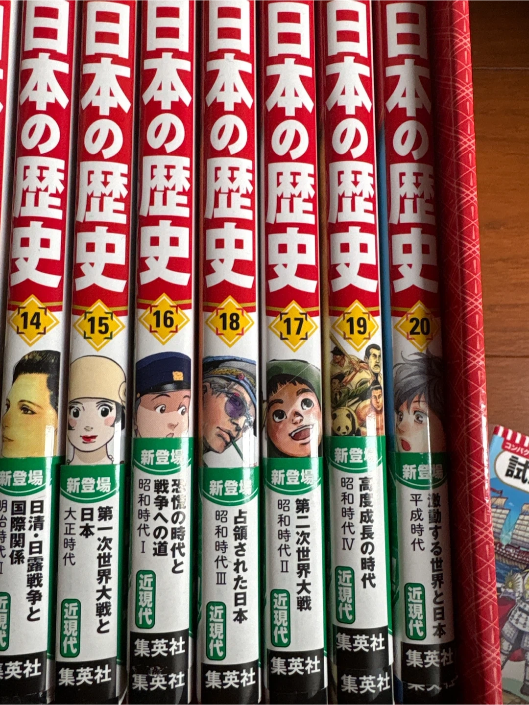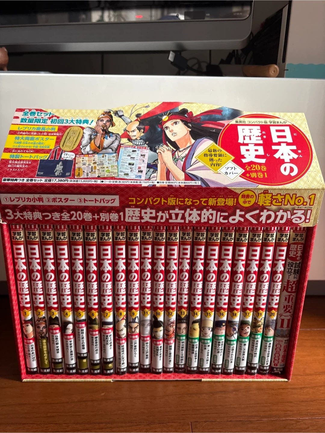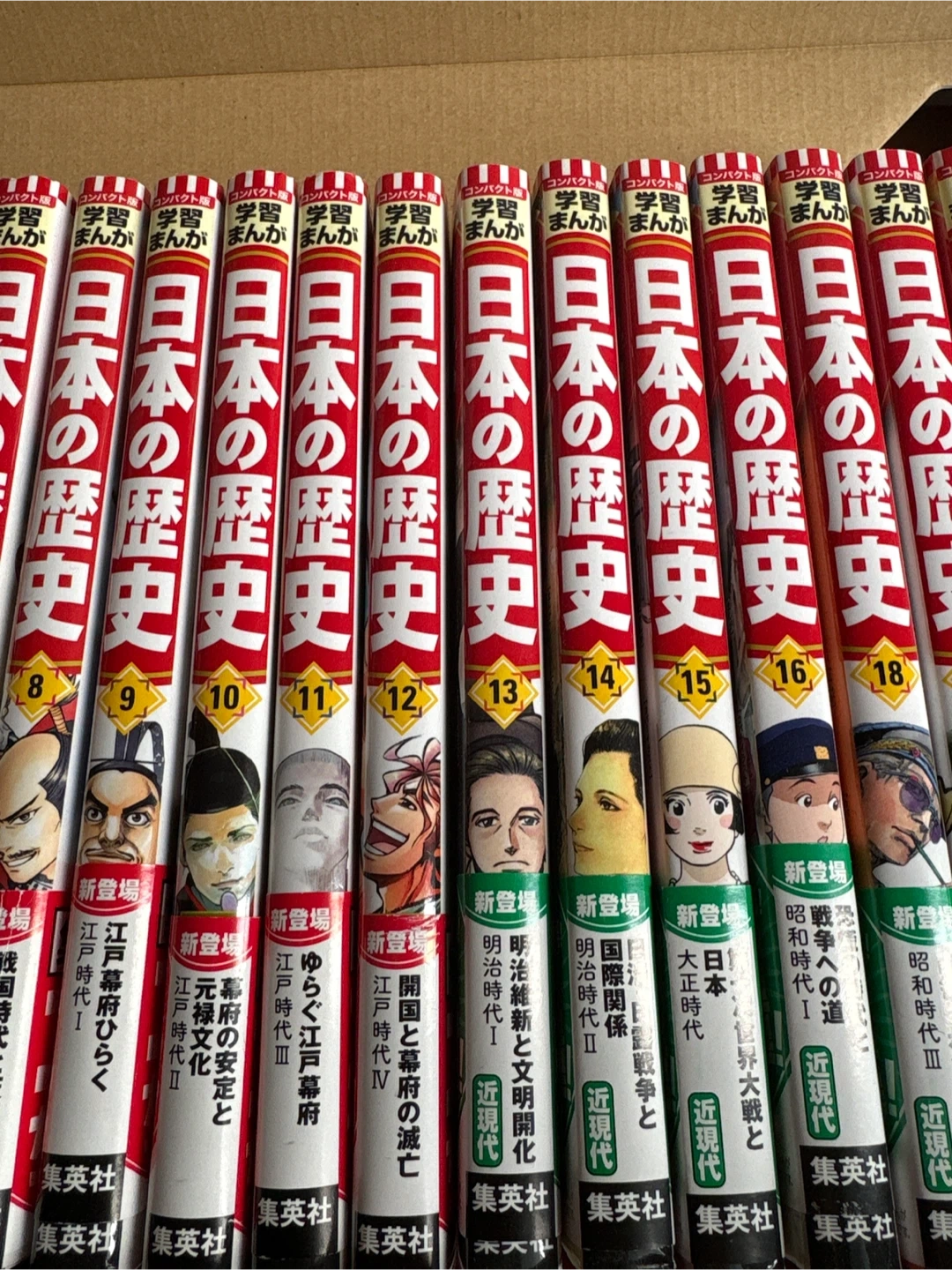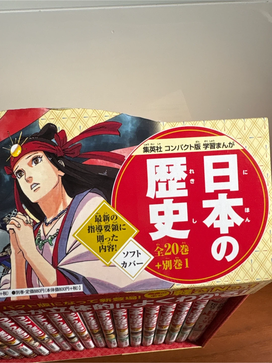 集英社 日本の歴史 全20巻 ➕特別付録1巻 2024年春に新品で購入、10巻くらいまで1読しました。 ほぼ綺麗です。 定価1万7380 集英社コンパクト版学習まんが日本の歴史ソフトカバー(全20巻+別巻1) 〇類書の中で最軽量! 1冊約230g、類書の中で一番軽い 〇テーマごとに歴史を掘り下げる別巻! 本編20巻の最高の参考書 暗記だけでは解けない論述式の問題にもばっちり対応 〇3大付録はついてません 大学受験まで使えるとのことで全巻セットを新品購入しました。