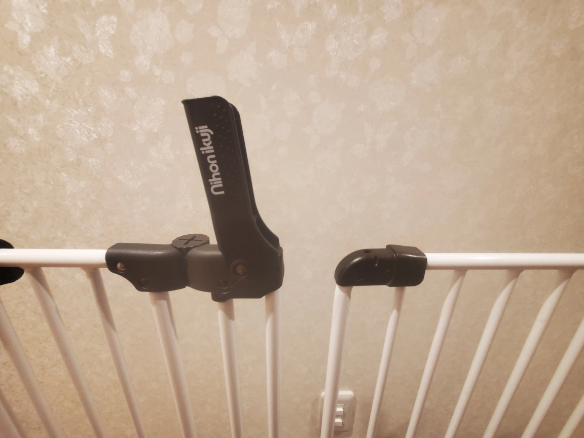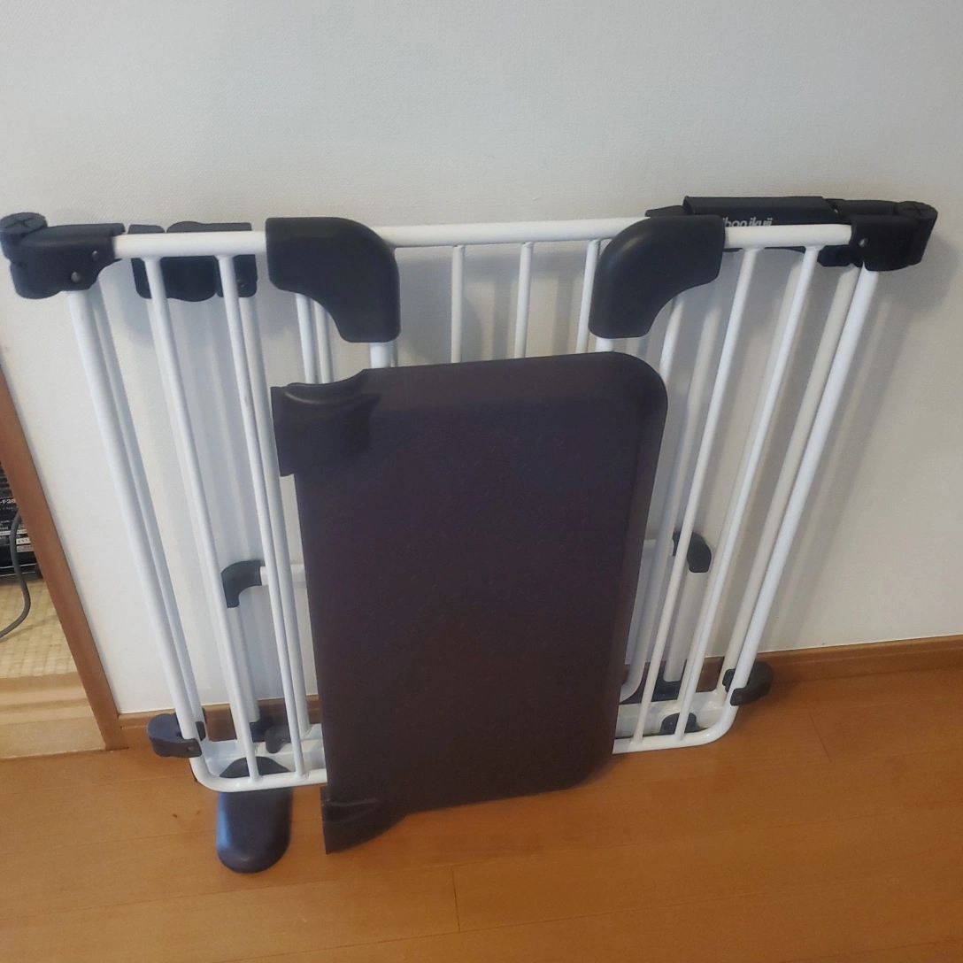 ・ベビーゲート 幅120cm(扉幅50cm) * 高さ70cm ・色:白、黒 ・日本育児 Nihon Ikuji 置くだけなので賃貸住宅でも使いやすいと思います。 設置に工具は必要ありません、使い方はボタンお押してロックを外し、軽く持ち上げながら扉を開きます。片手で操作可能です。 閉まるときは自動で締まります。 必要な方にお譲りします。