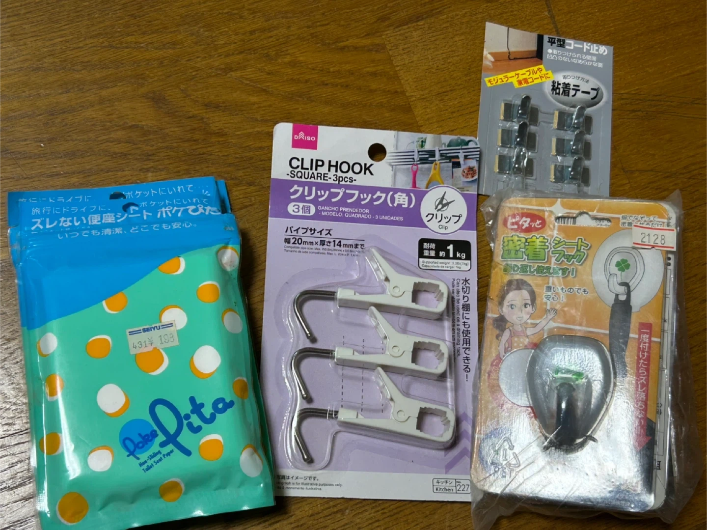生活便利グッズです フック 2種 使い捨て便座シート 在庫整理をしていて集まった 生活必需品 或いは便利グッズ達です どれも 未使用 あるいは ほぼ未使用な物ですが だいぶ前に購入した物です