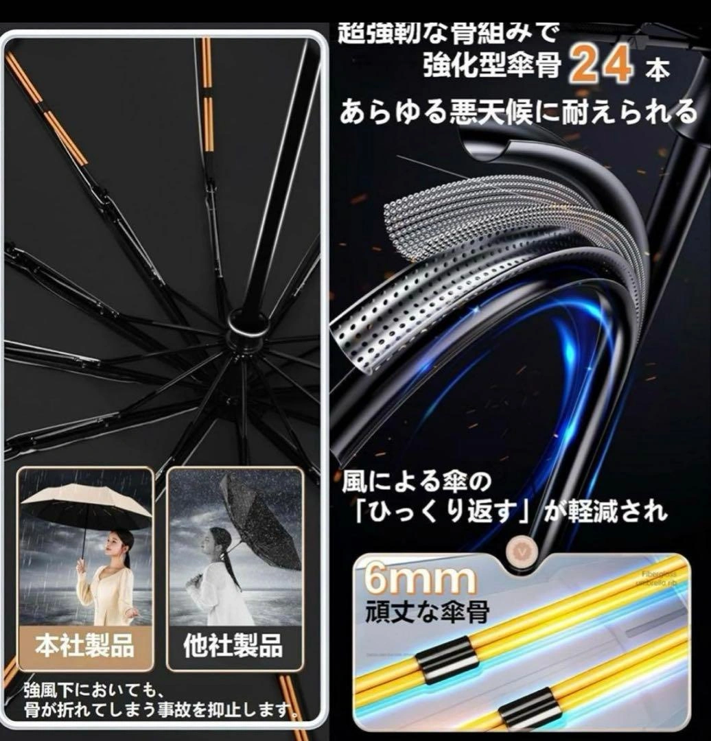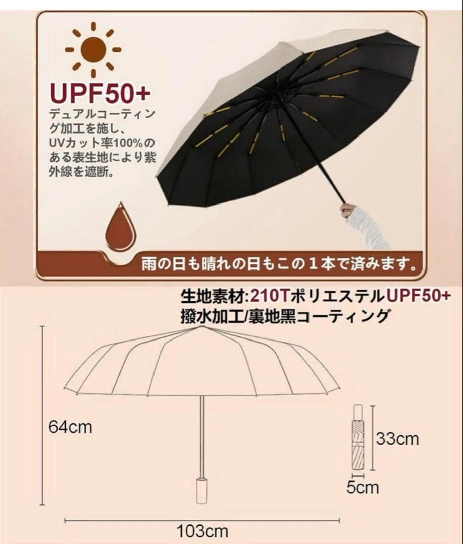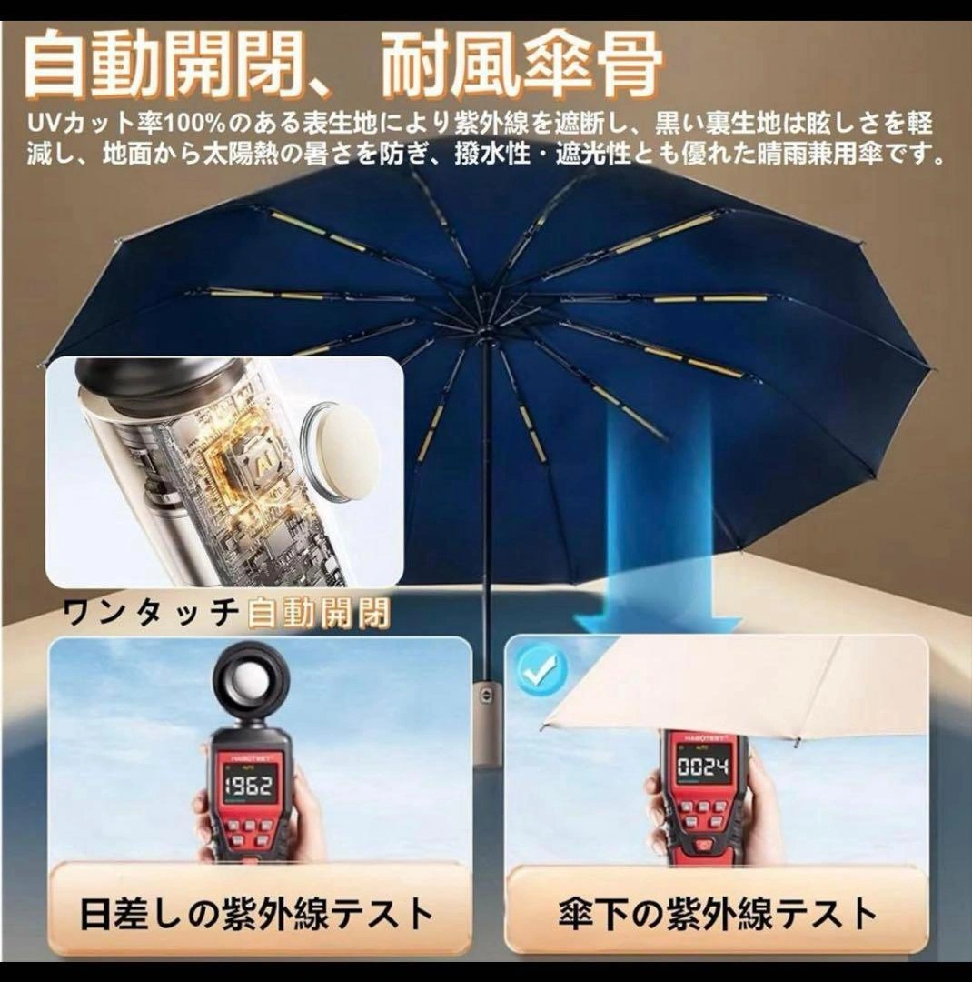 UVカット率100%の晴雨兼用傘です。撥水加工で雨の日も安心です。 2025年 強化型 24本骨 折りたたみ傘 写真最後の未開封のものを発送します。 【自動開閉、耐風傘骨】素材:アルミ・210Tポリエステル 重量:約460g 親骨61cm 開く直径は103cmで、弧長116cmまで達し、折りたたむ時の長さは33cmです。超強軔な骨組みで強化型傘骨24本傘骨を24本採用することで高強度を実現、あらゆる悪天候に耐えられる。強風下においても、風による傘の「ひっくり返す」が軽減され、骨が折れてしまう事故を抑止します。持ち手は高品質なABS樹脂で作られており、手触りが良く、8cm持ち手フィット感抜群。長時間使用しても手首が疲れにくいです。 【超撥水210T生地テフロン加工、晴雨兼用】高密度の210T生地は雨が染み込みにくいし、表面テフロン(Teflon)撥水コーティング施され、軽く振るだけで水滴を落とし、さっと雨粒を拭き取ると早く乾燥させることができる折り畳み傘です。この折り畳み傘はデュアルコーティング加工を施し、UVカット率99%のある表生地により紫外線を遮断し、黒い裏生地は眩しさを軽減し、地面から太陽熱の暑さを防ぎ、撥水性・遮光性とも優れた晴雨兼用傘です。ますます暑くなる夏日に、男性が日傘として使っても違和感がなく、熱中症予防にも役立ち、日傘に抵抗がある方でも雨傘と同じ感覚でお使いいただけます。 雨の日も晴れの日もこの1本で済みます。 【使用方法】閉じ方:シャフトを押し込みます。「カチッ」のロック音を聞くと、(必ずトップまで押し込んでください。)自動で傘が閉じます。傘をしっかりと根元まで押し込まないと ボタンを押しても動かない点は注意が必要です。開け方:ボタンを押します。 - 色: 水色 - UVカット率: 100% - 撥水加工: 高撥水加工 - タイプ: 晴雨兼用 - 用途: 日傘/雨傘 ご覧いただきありがとうございます。 カラー···ピンク ご希望の方はお気軽にご連絡ください。
