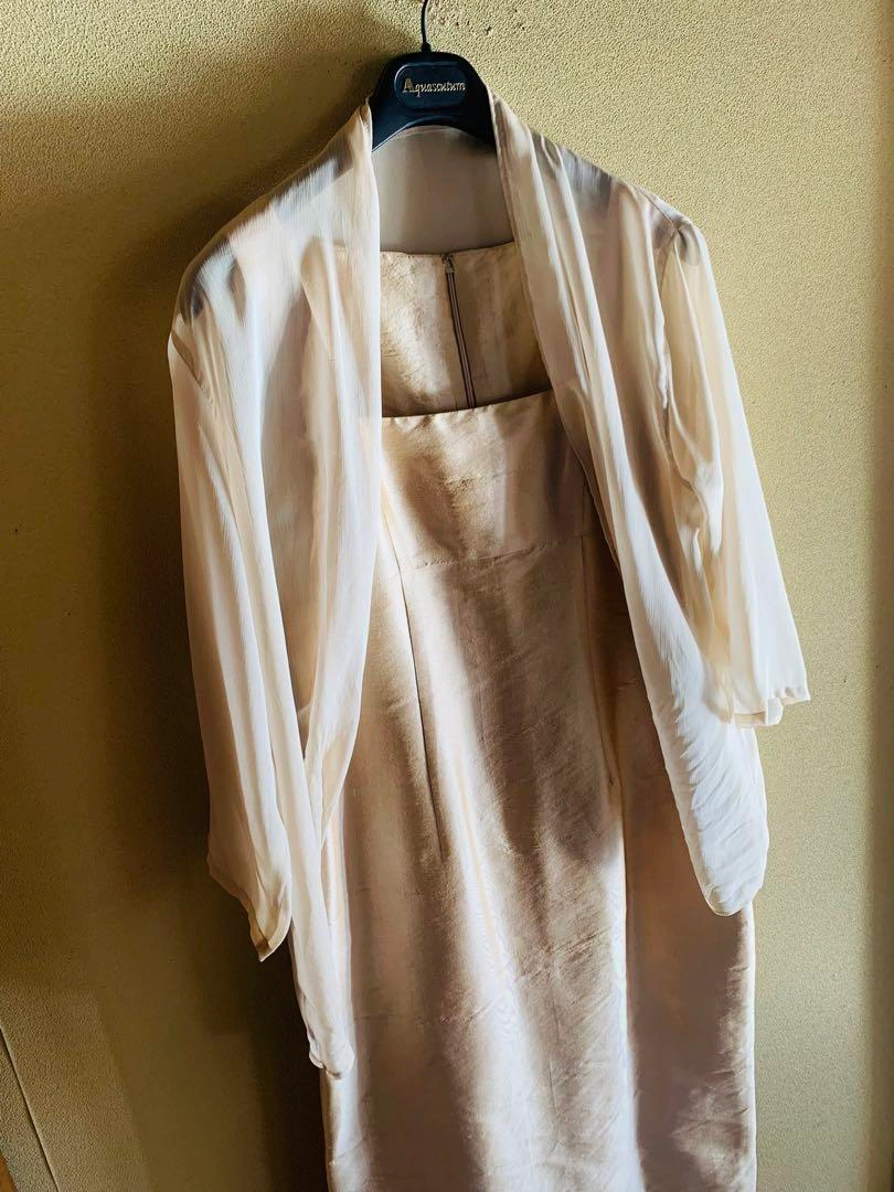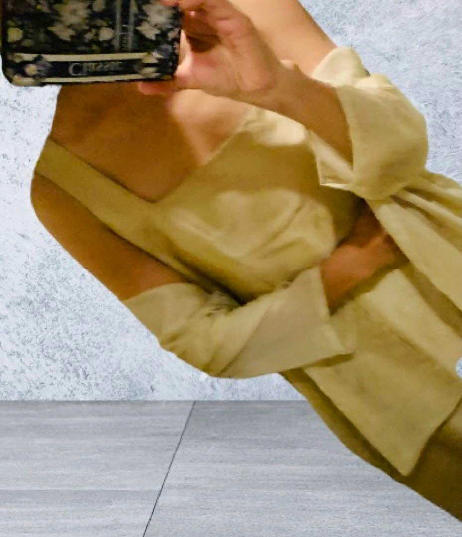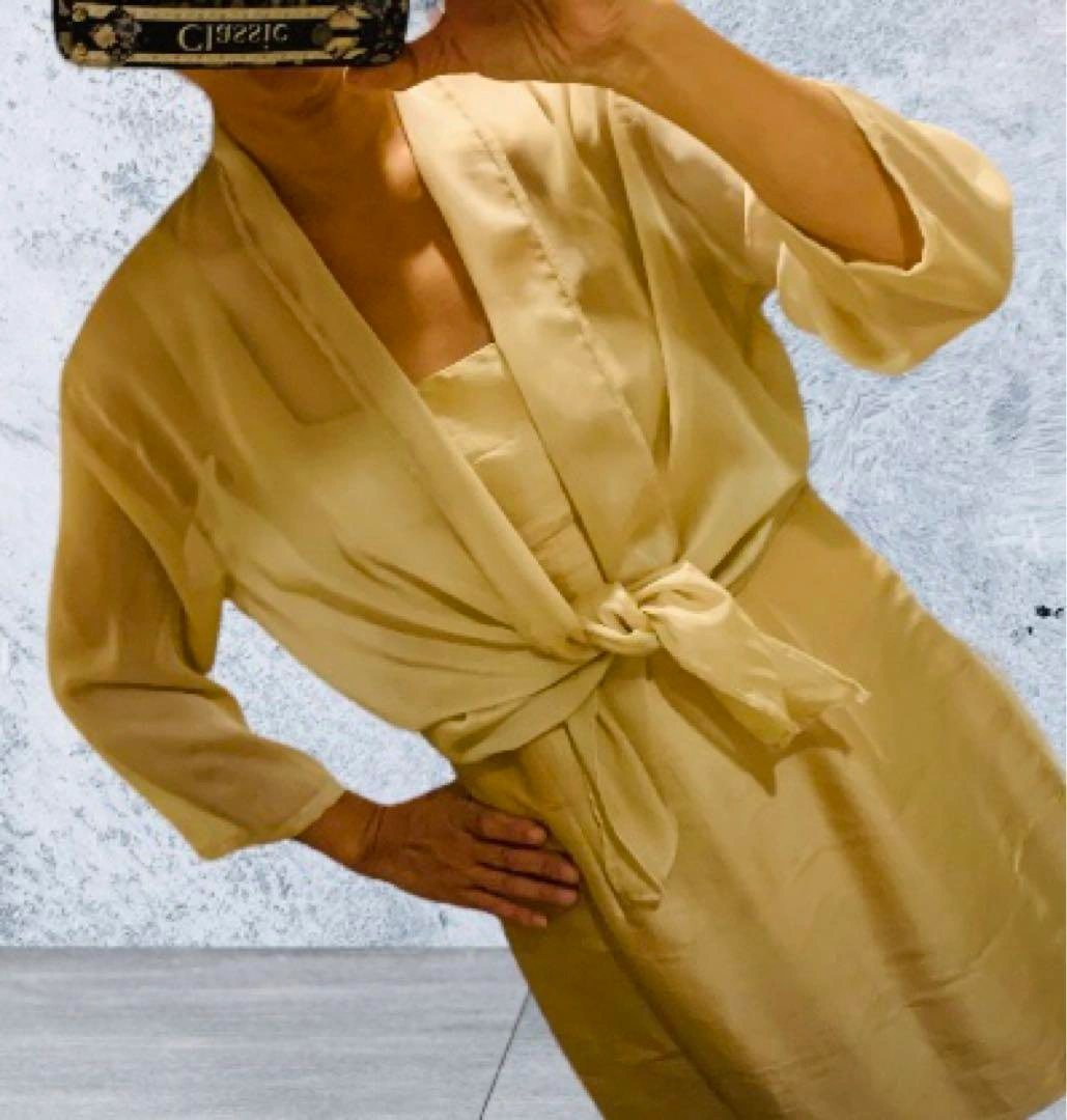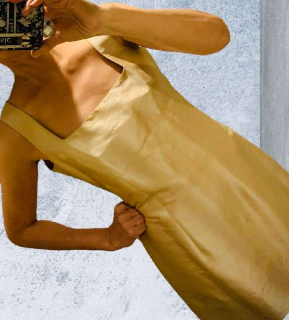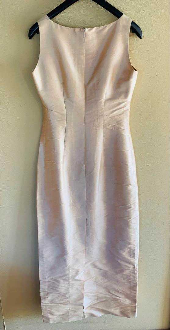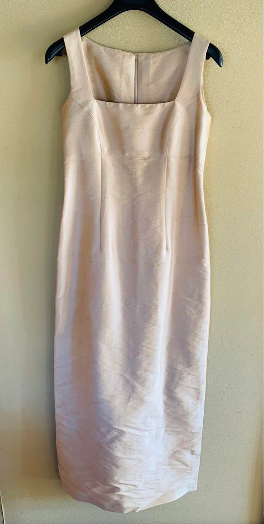大変美しい光沢の上質厚地タイシルク生地のロングドレスです。バンコクの専門ブティックでオーダーしました。一度レセプションで着用後、自宅保管しておりました。 胸元がスクエアでデコルテを綺麗に演出し、シンプルなデザインで美しいシルエットが際立ちます。同色のシースルーカバートップス(フリーサイズ)もございます。 上質タイシルク100% 袖丈···袖なし カラー···ホワイティピンクベージュ 柄・デザイン···無地 季節感···春,夏,秋,冬 肩幅...38cm 身幅···42cm(バスト85〜93位) ウエスト···39cm 着丈···140cm 私は身長165cm位です。 ご希望の方はお気軽にご連絡ください。