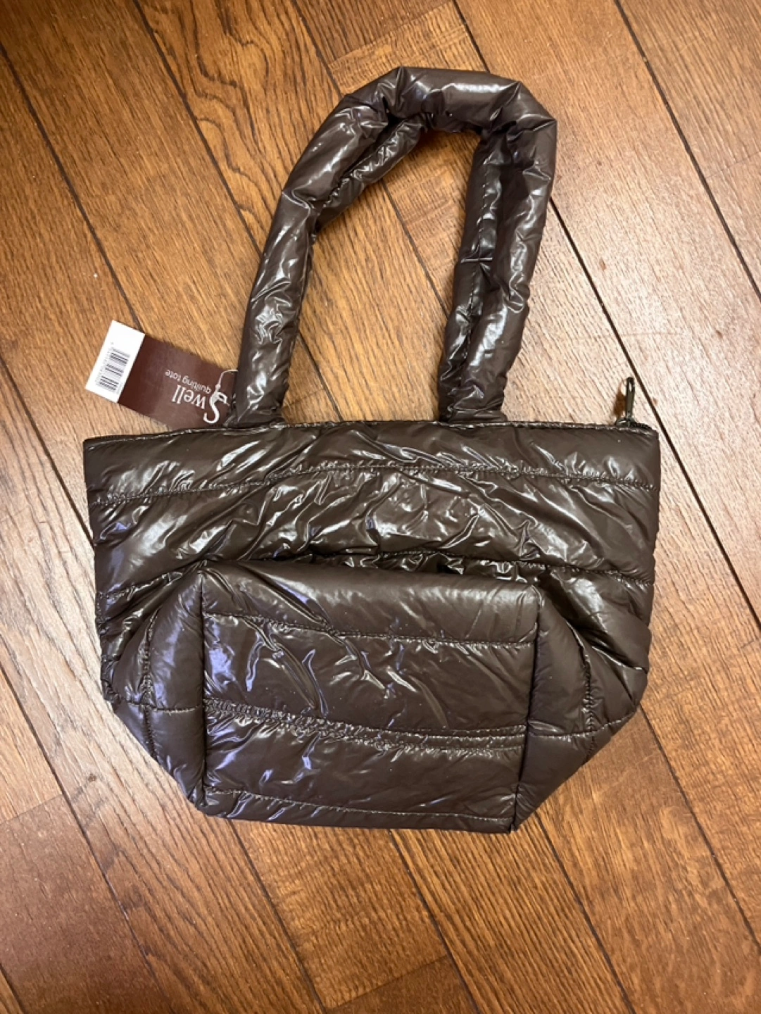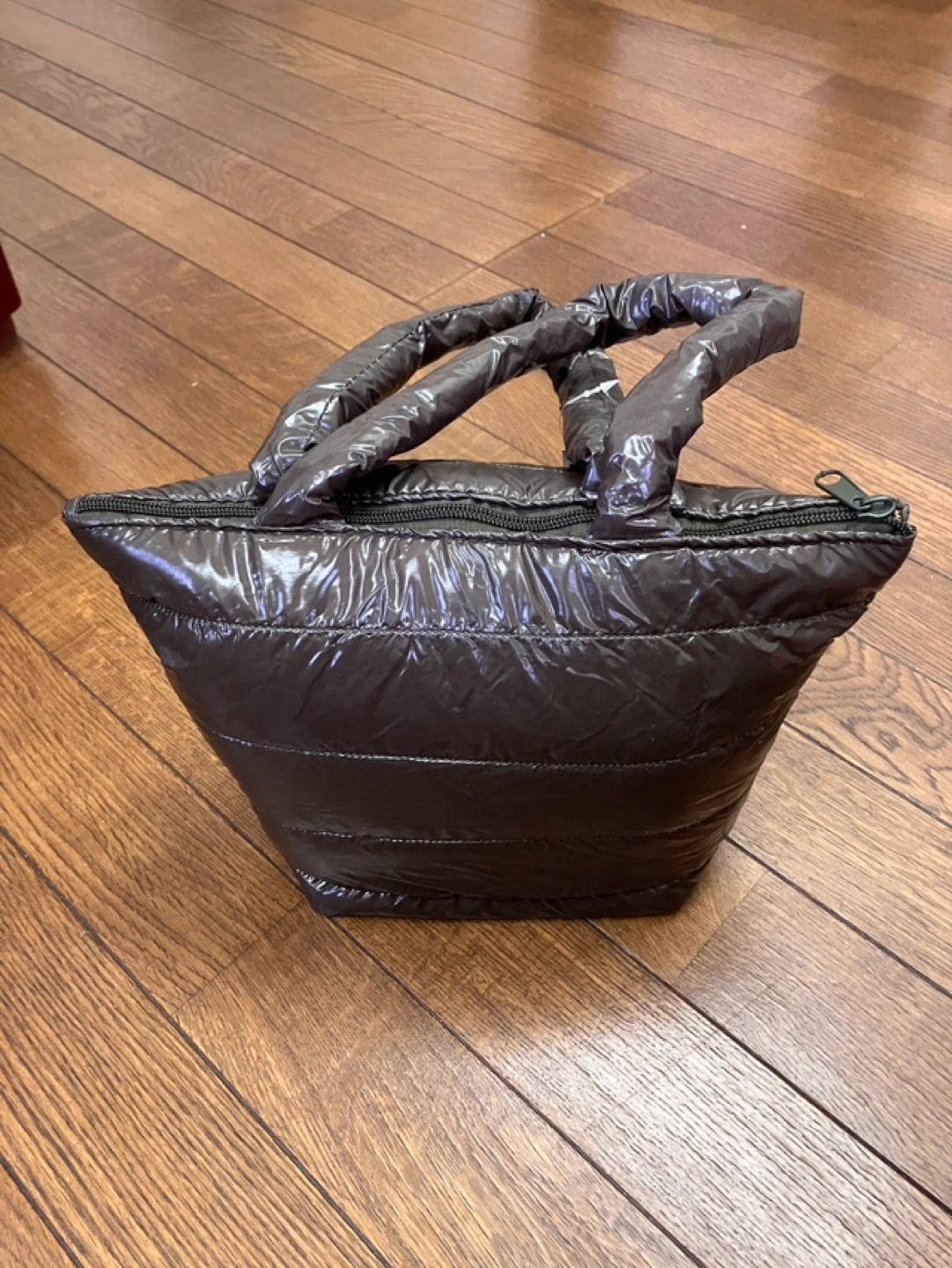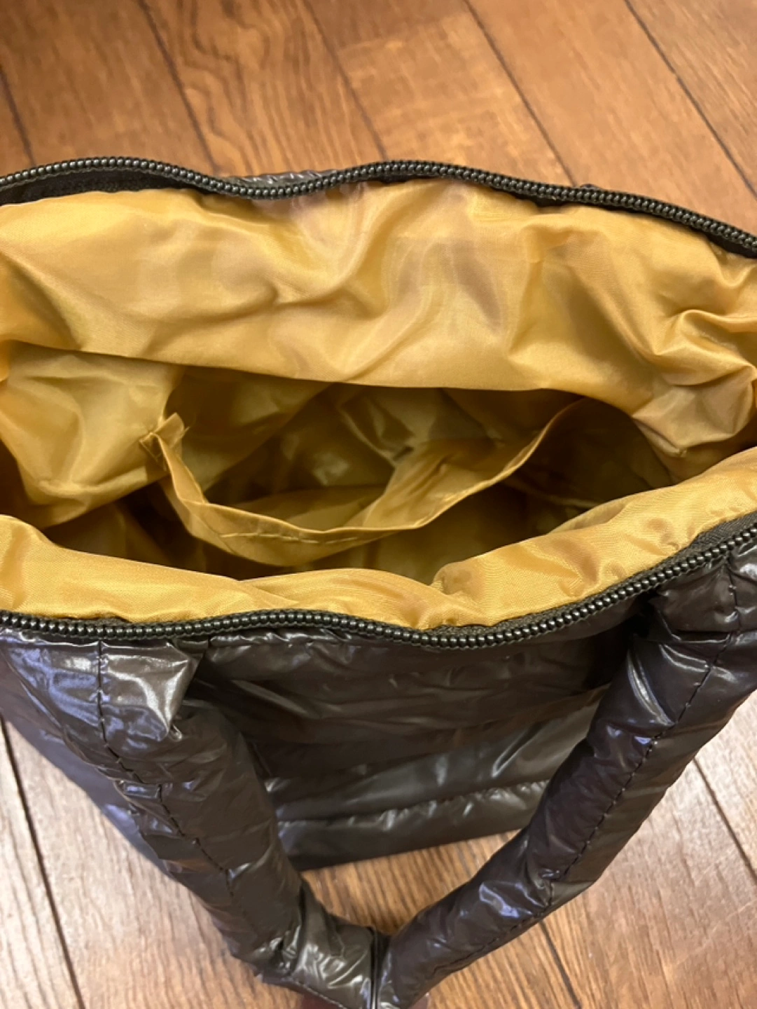 新品未使用品になります とにかく軽いバック 持ち手も長めなので、厚手コートでなければ肩からかけられると思います 中が見えないように、ファスナーもついています 内布も貼ってあり、ポケットが1つあります 素材はナイロンとポリエステル表示です 大まかに 上部幅30センチ 下部幅26センチ 底のマチ幅16センチ×15センチ 持ち手40センチ でした 自宅保管にご理解いただけます方に