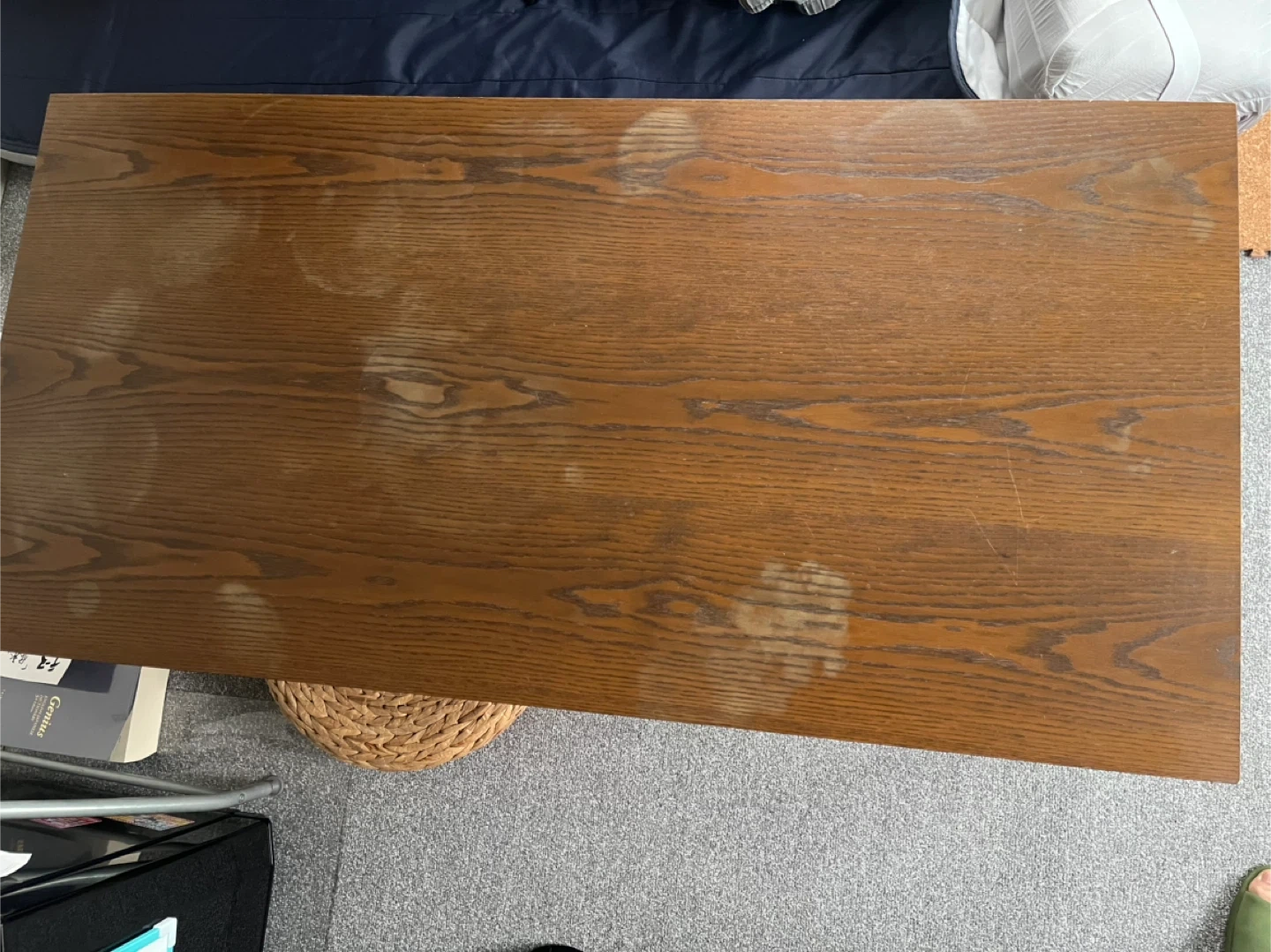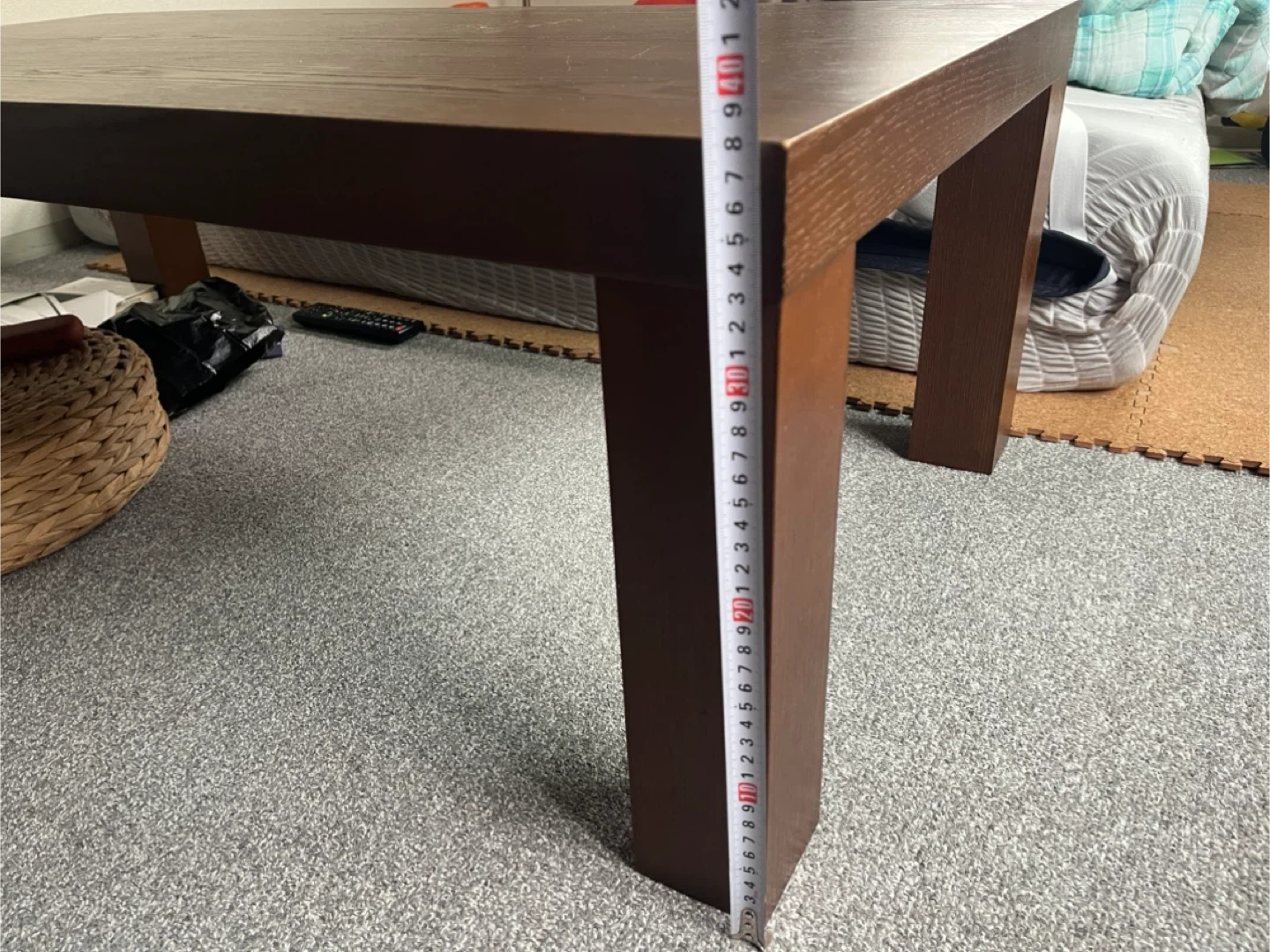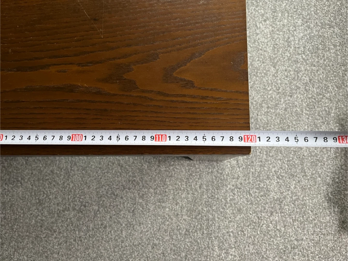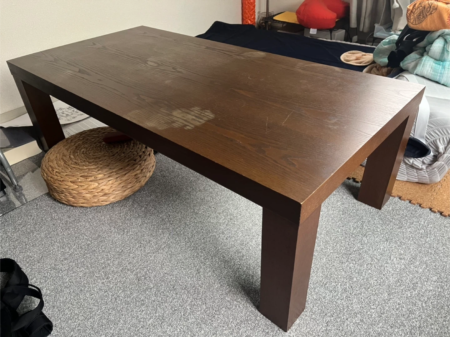 木製のテーブルです ・カラー:ダークブラウン ・サイズ:約120cm x 60cm ・高さ:約40cm ・天板にシミのような跡があります ・脚の裏にキズ防止フェルトが貼ってあります 中古品であることご了承ください