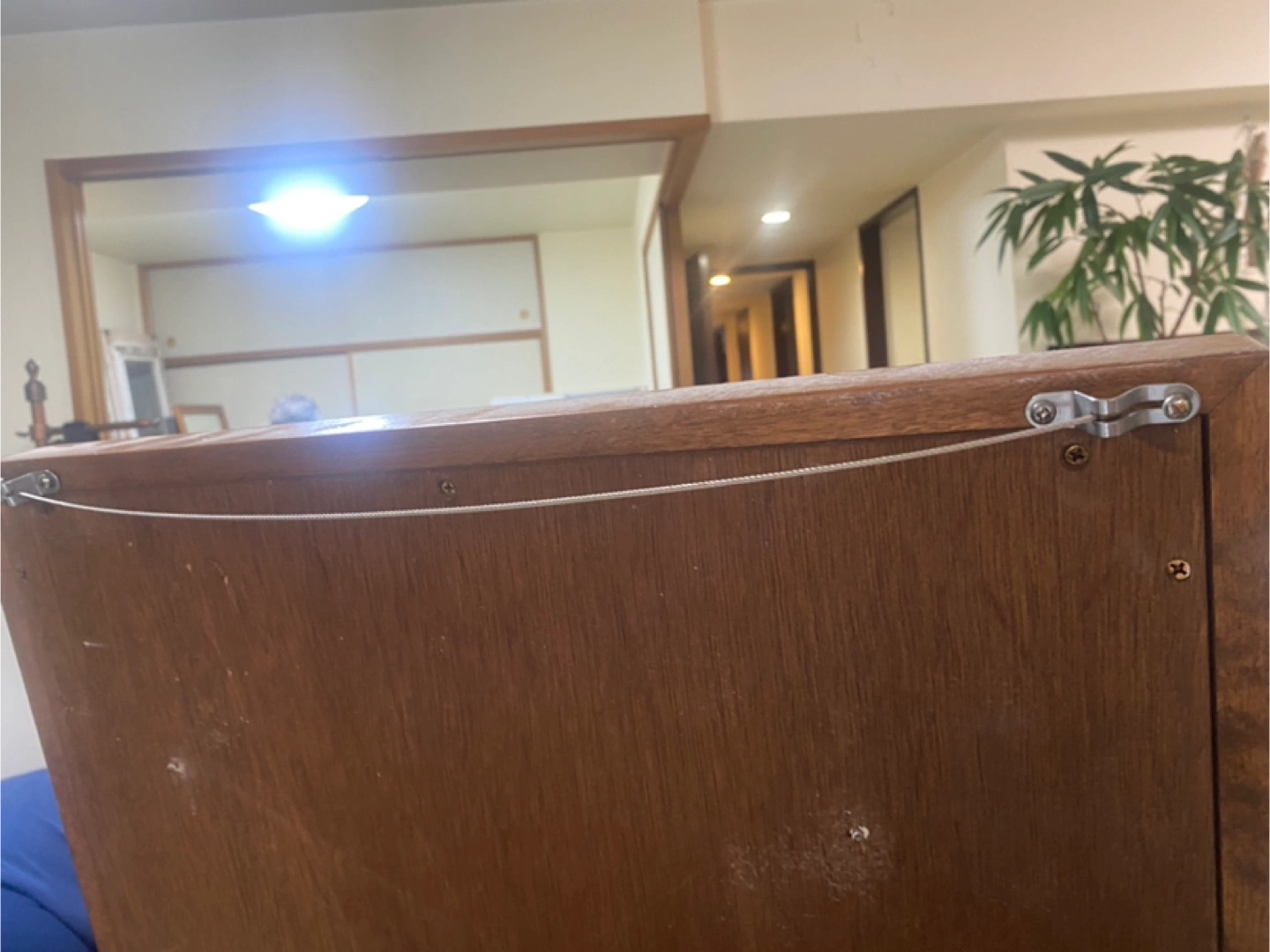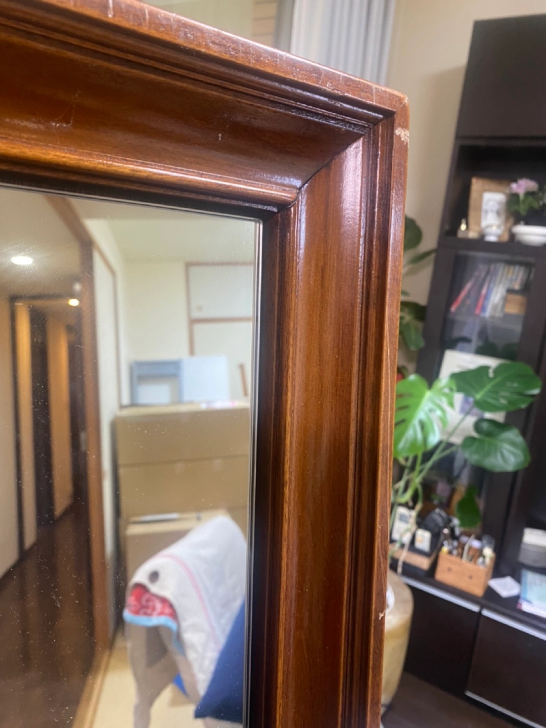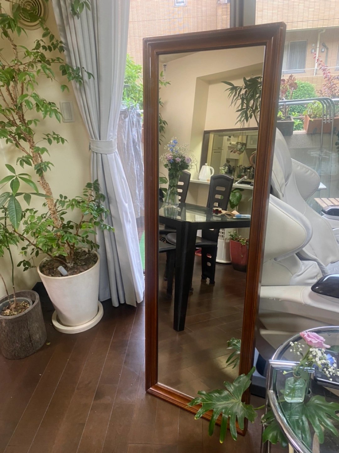 ・木製フレーム ・全身鏡 ・壁掛け用ワイヤー付き ・フレームにキズ、スレあり お値下げしました! 木目の色はダークよりは少し明るいオーク系です。 ※もう一色、こちらより少し濃 薄いブラウン、ナチュラルブラウンも同サイズで出品しています。 厚みは4センチ程です。 アパレルSHOPで使用していました。 オーダーメイド品です。 下の方に少し傷があります。 ワイヤーで吊るすこともできます。 傷などご理解頂ける方にお願いいたします。 お近くでしたらお届けも可能ですのでご相談ください。