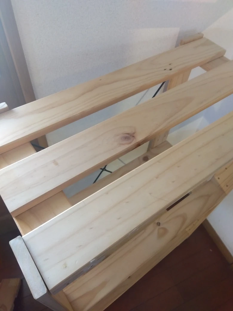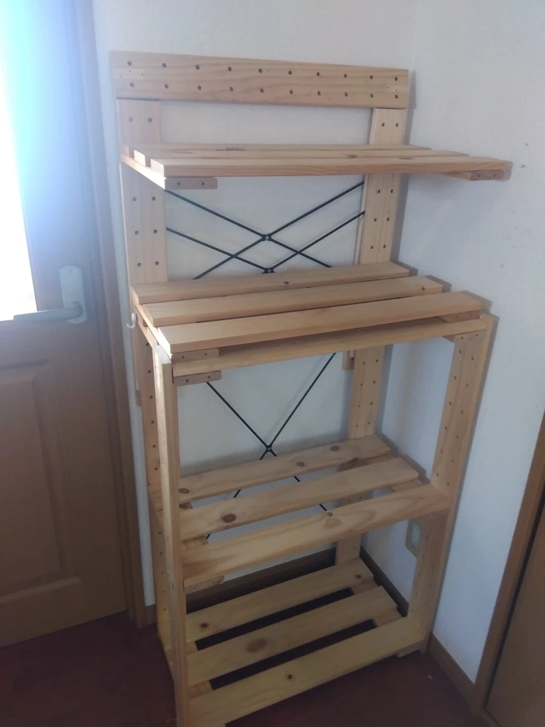 木製の棚です。 ・木製 ・棚板3段 ・使用感あり 中古品であることをご了承ください。 DIYのものでランドセルラック、本棚として使用していました。3枚目4枚目の写真のように棚や帽子などかけるように板など付け加えたい方仰っていただければと思います。 (ネジやL字プレート差し上げます) 15日までに決まらなければ粗大ごみに出す予定です
