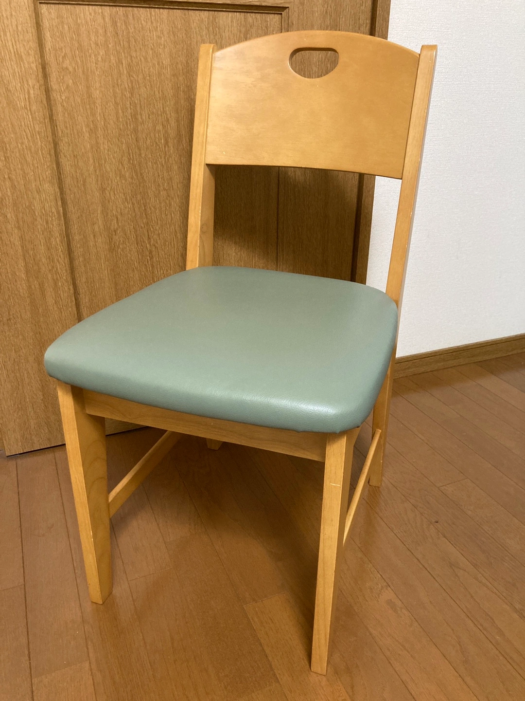 ・木製フレームのイス ・座面:モスグリーン ・ところどころキズ、スレあり ・背もたれに手持ち用の穴あり 背もたれがしっかりしていて、座り心地の良いしっかりしたイスです。 実家の父母が使用しておりましたが、使わなくなりましたので 、出品いたします。 出品にあたりキレイに磨きました。 小さなキズ、スレ、汚れ、塗装剥がれがあります。 経年による座面の色褪せが少しございますが、まだまだ充分にご使用いただけます。 車で受け渡しに行きます。 受け渡し場所はご遠慮なくご相談ください!