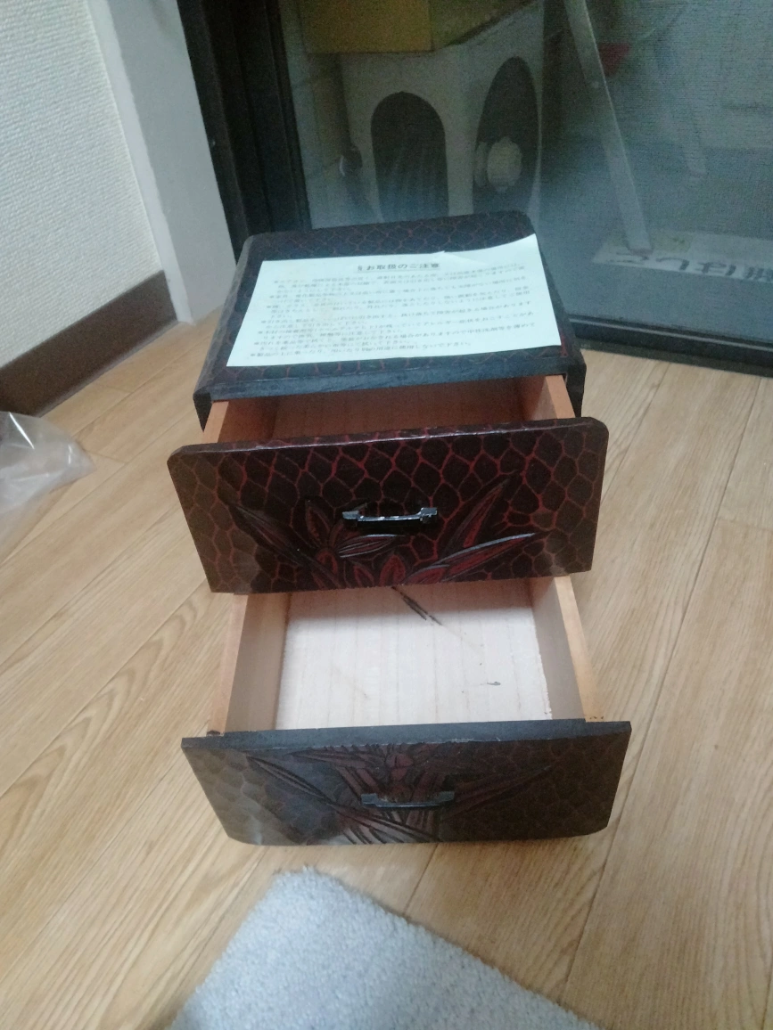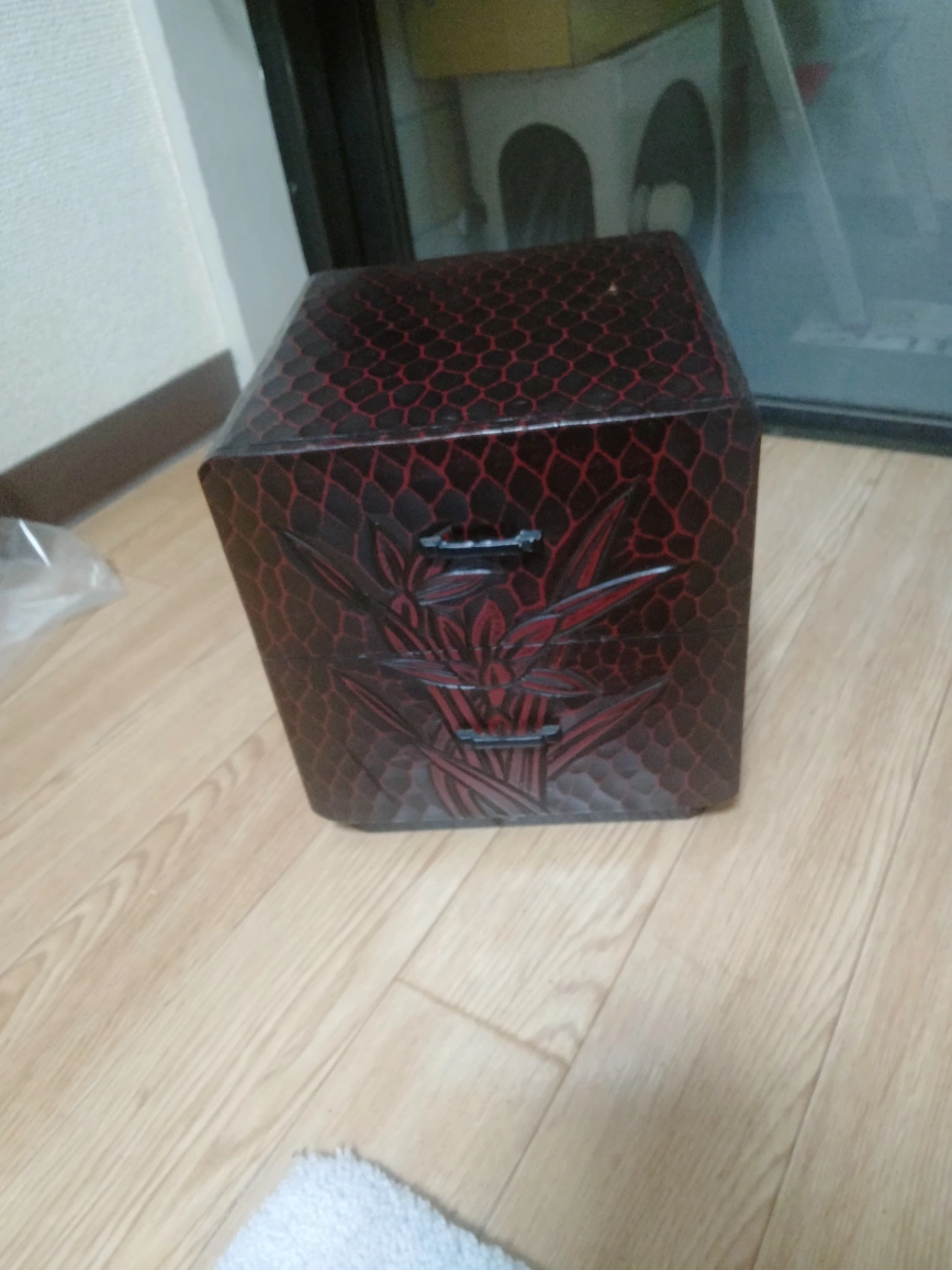 木製のミニチェストです ・色:赤みがかった茶色 ・2段 ・模様あり ・使用感少なめ 中古品であることご了承ください