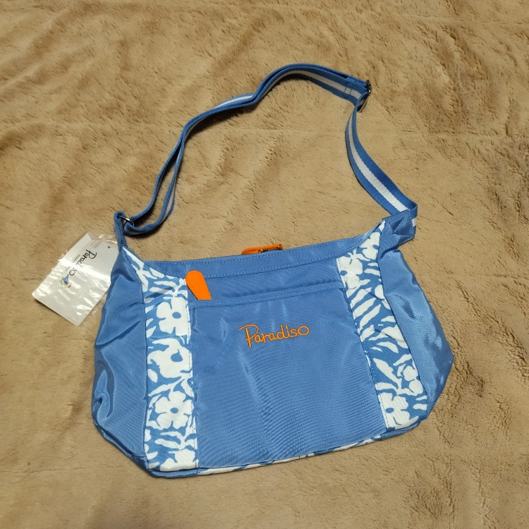 青色の花柄デザインで、未使用タグ付きのParadiso製ショルダーバッグです。 - ブランド: Paradiso - 色: 青 - デザイン: 花柄 - タグ: 未使用タグ付き ショルダーバッグ 品番 TAA742 素材 ポリエステル カラー SA(サックス) サイズ L30㎝×W15㎝×H23cm メーカー希望小売価格 3,900円+税 ご覧いただきありがとうございます。