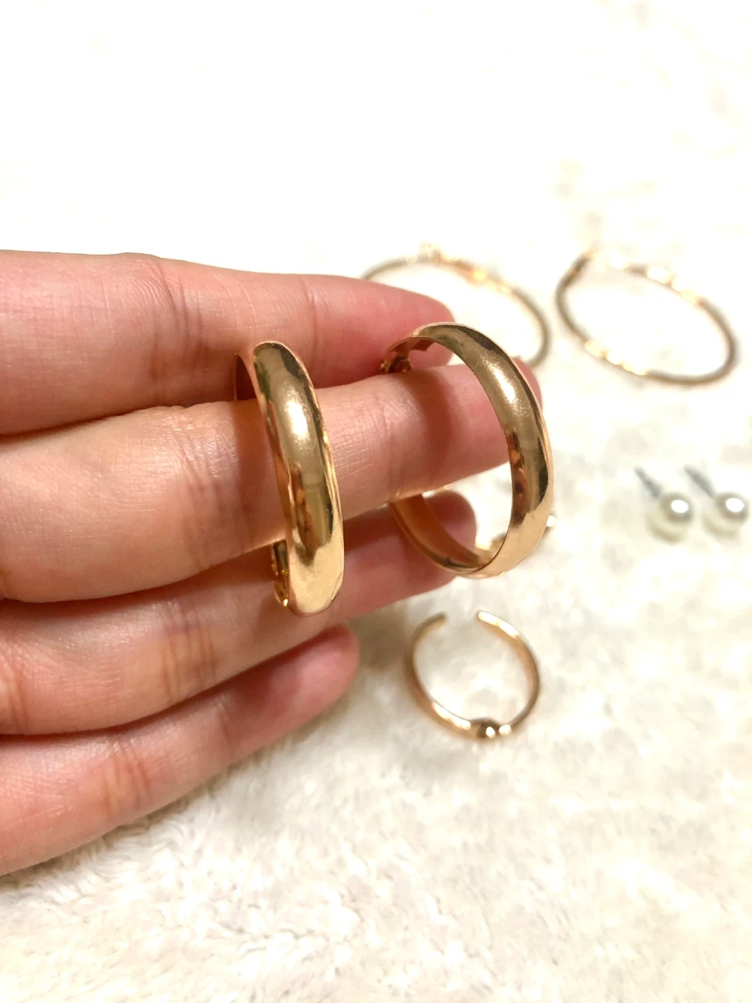❤️ ✨未使用品✨ ジュエリー6点:ゴールドカラーのイヤリングとリング。