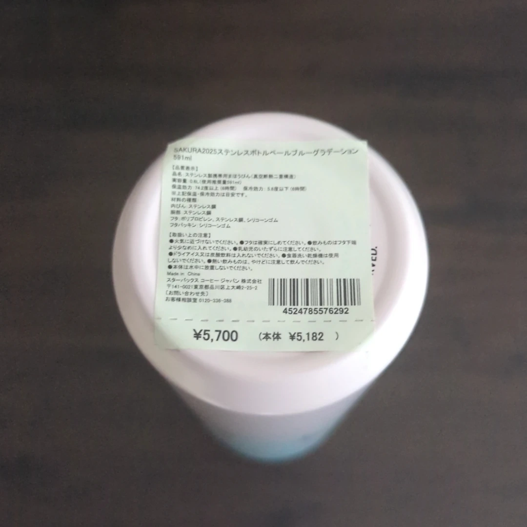 今年春に販売された『SAKURA2025』シリーズのステンレスボトルです。 購入したものの使用機会がなかったためお譲りします。 -- ◆商品詳細◆ ブランド:スターバックスコーヒー 商品名:SAKURA2025ステンレスボトルペールブルーグラデーション591ml 容量:591ml 定価:5,700円(税込) ◆商品の状態◆ ・未使用品 ・店頭購入品のため、表面に小さな初期キズ等あります(写真6枚目参照) -- 未使用品ですが一度人の手が触れた中古品です。 不備のない完璧な美品を求める方や神経質な方はご遠慮ください。