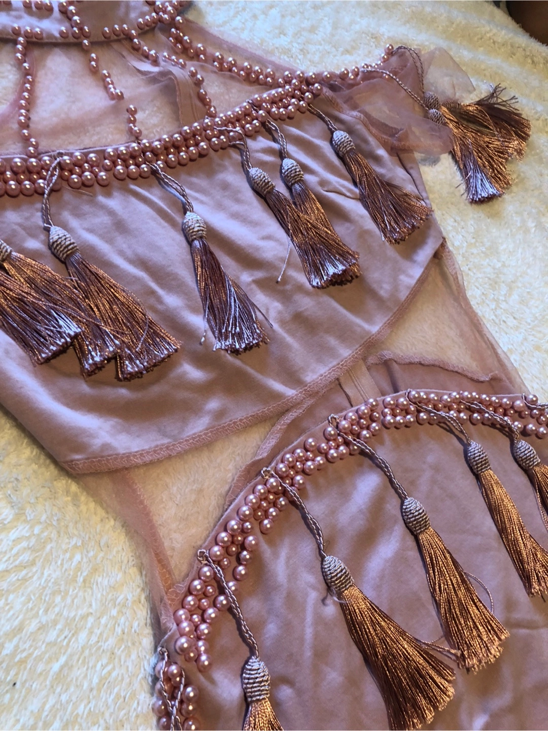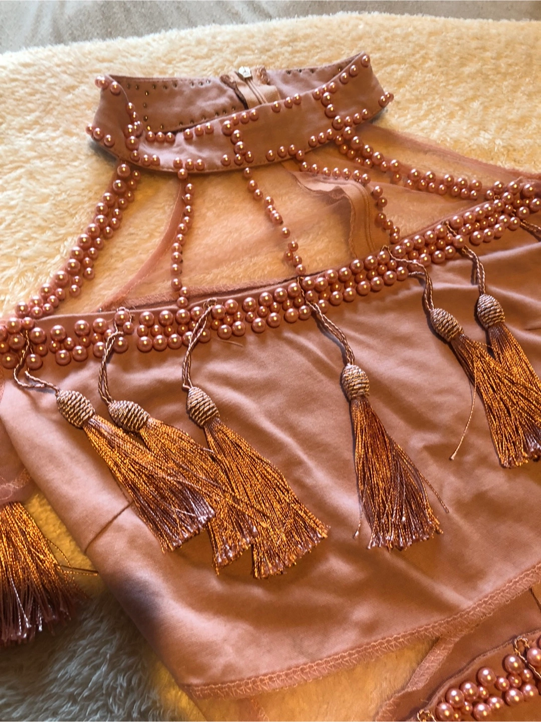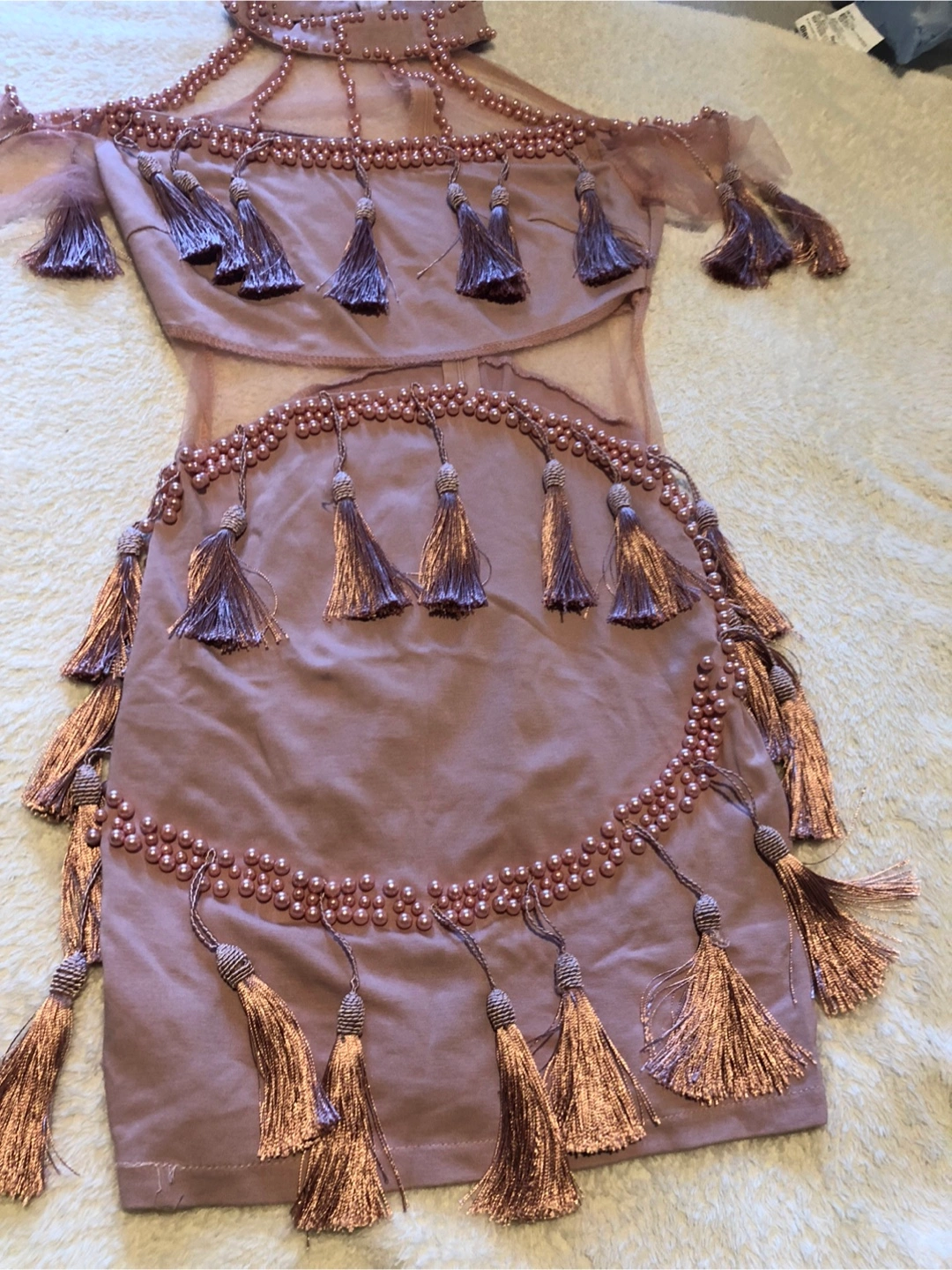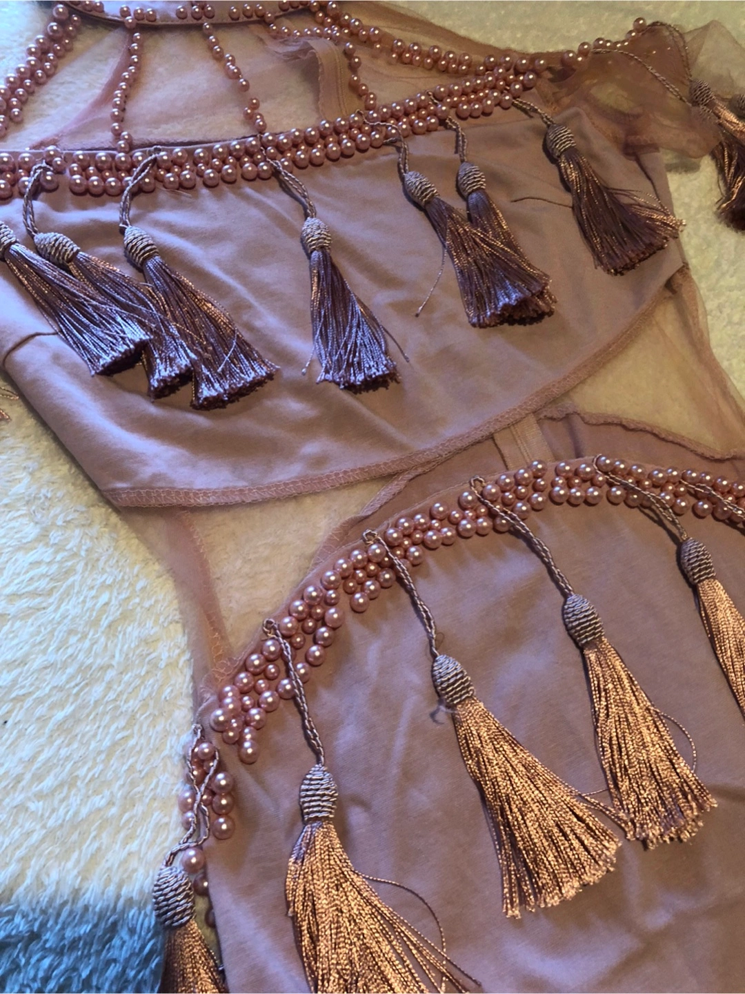 🤍2点セット:スパンコールトップスとショーツ、サイズM〜L