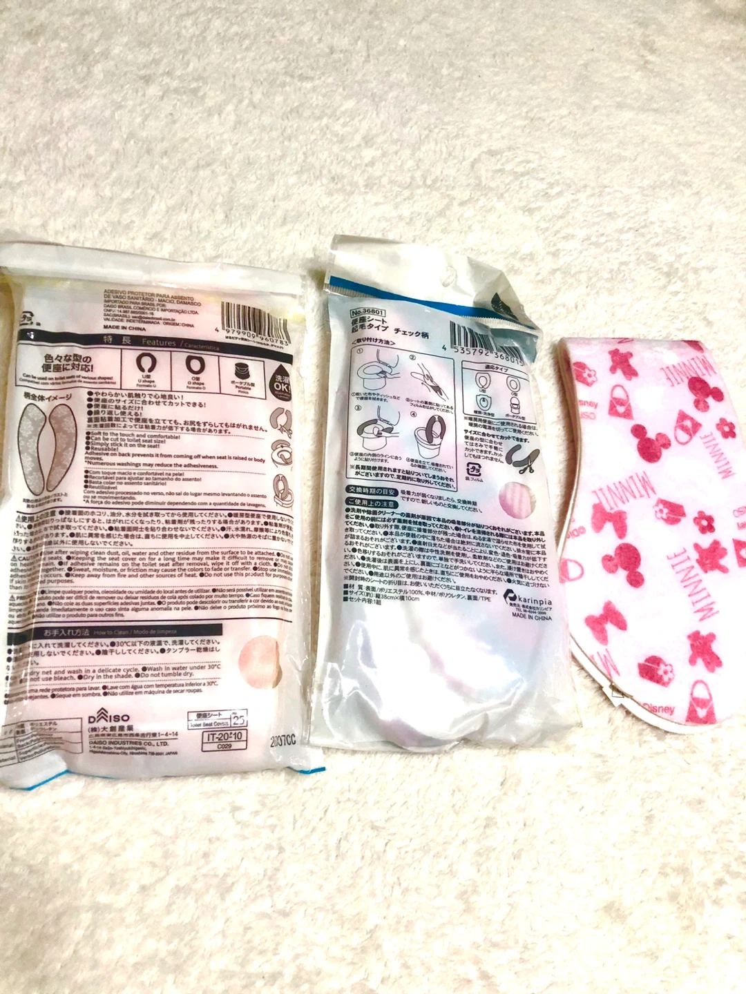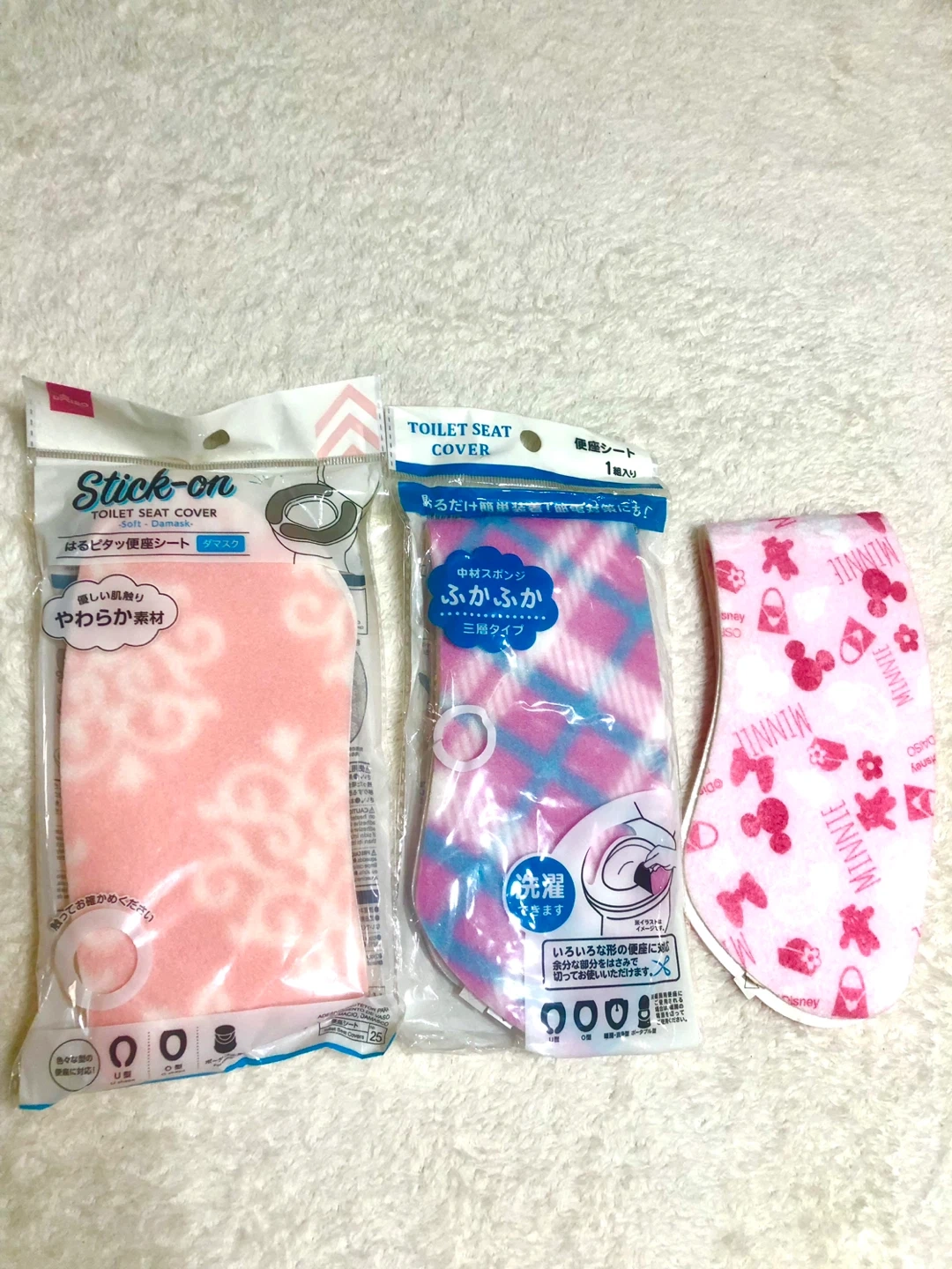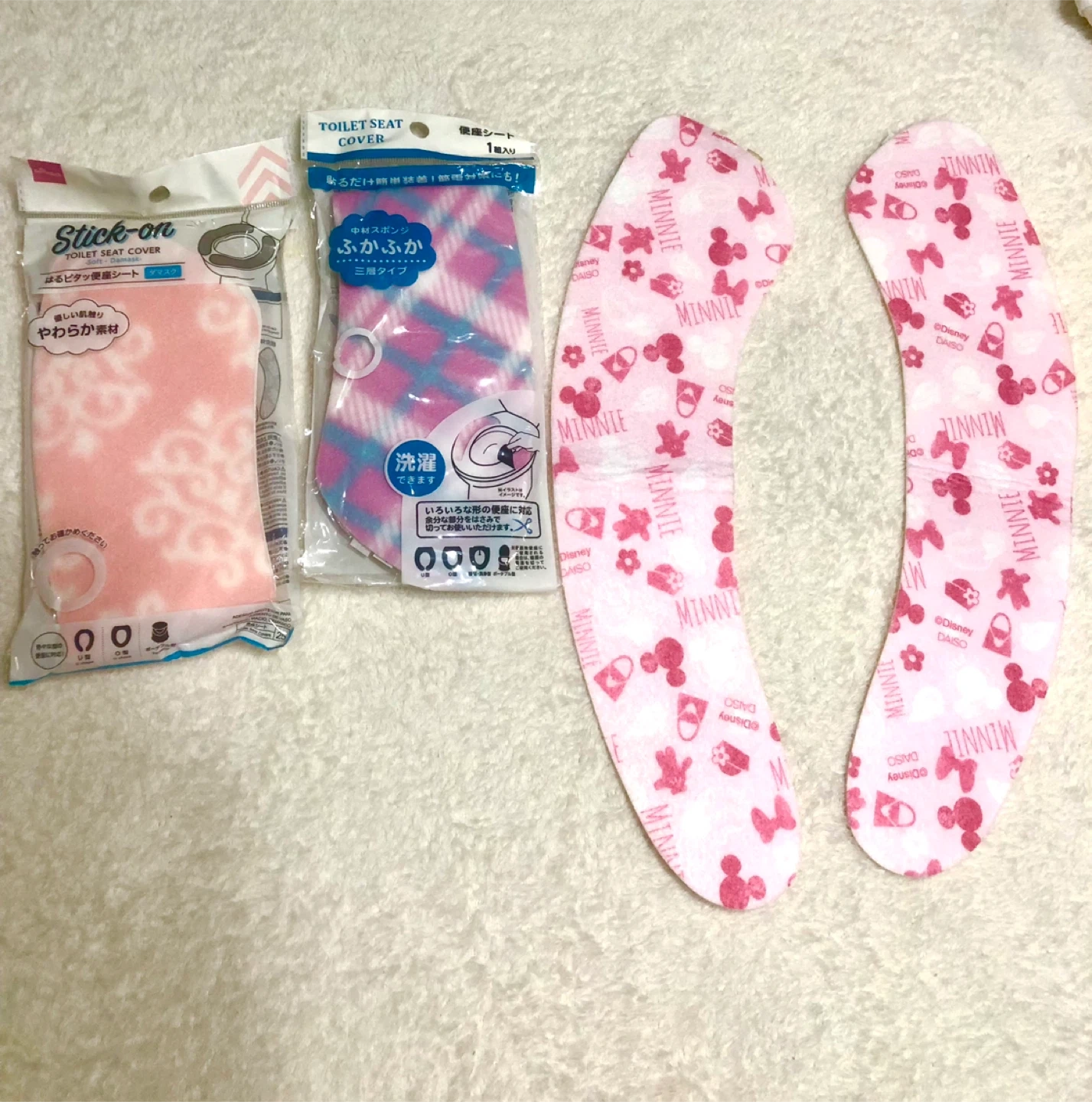 トイレ便座シートです。 ピンク色の「Stick-on TOILET SEAT COVER」と記載 ・水色とピンクのチェック柄の「TOILET SEAT COVER」と記載 ・ピンク色でミニーマウスのデザイン 新品、未使用