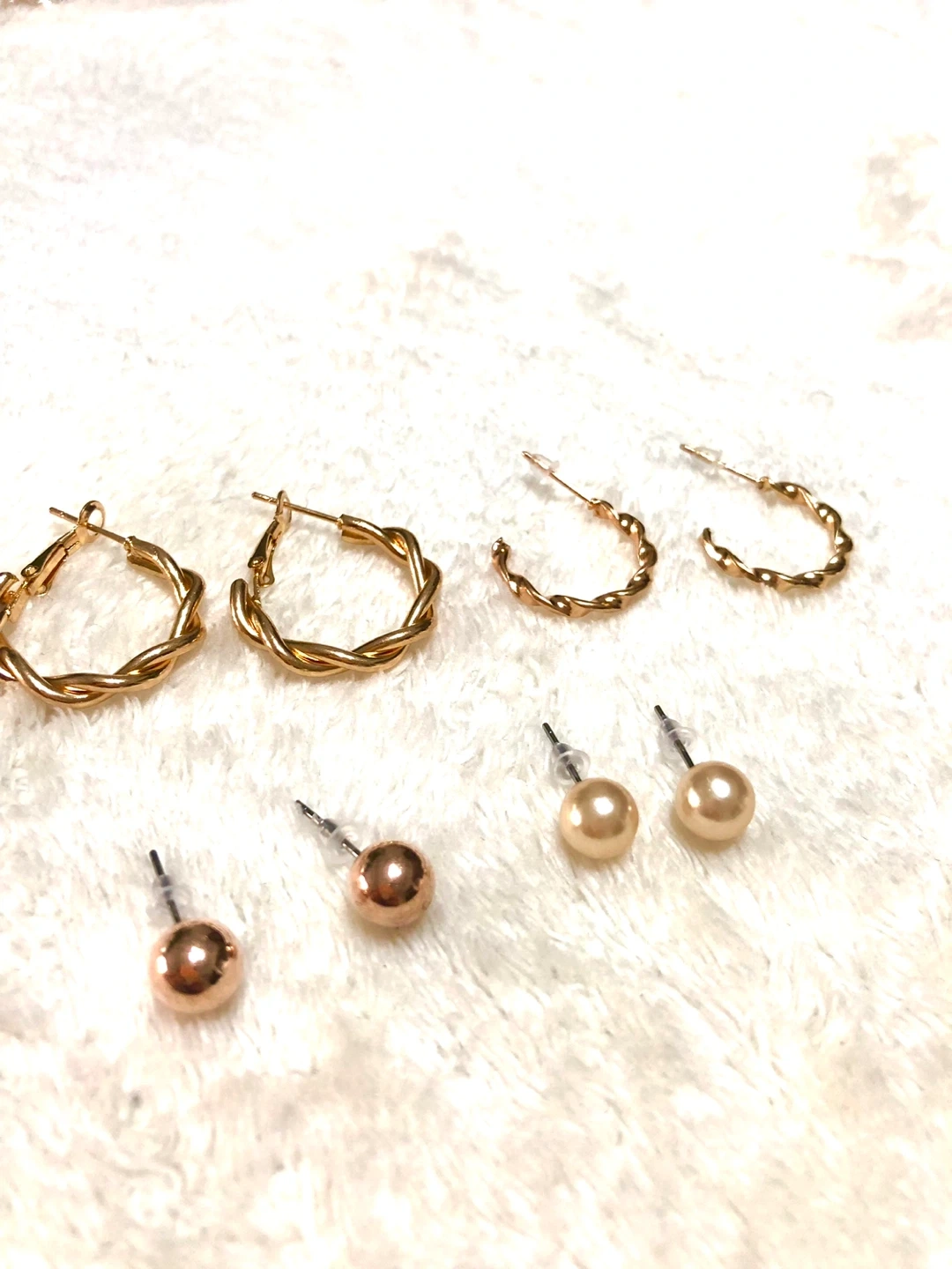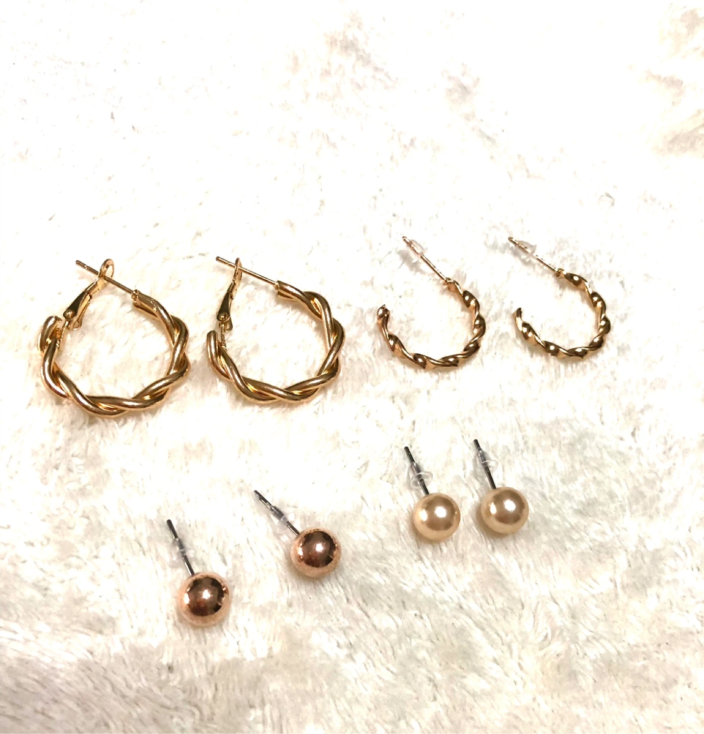 ❤️ ✨未使用品✨ ジュエリー6点:ゴールドカラーのイヤリングとリング。