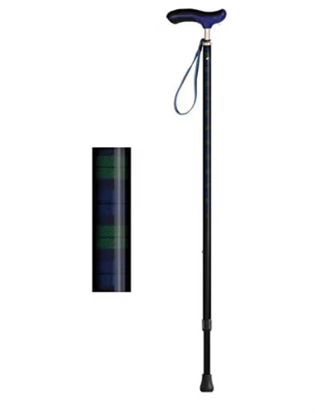 杖です。 ・色:黒、青、緑のチェック柄(アイビー柄) ・持ち手:青色 ・ストラップ付き ・伸縮可能 柄違いで、二本購入してしまったので、この未使用分を出品します。 この杖は、軽く、グリップに特徴があります。画像参照ください。 形は、鴨のくちばしのようになっており、曲面で平ら。体重がかけやすくなっています。 ジェル入り。滑りにくくなってます。 もう一本柄違いで購入したのは、税込11,000円でした。 こちらは、Amazonで6,900円。