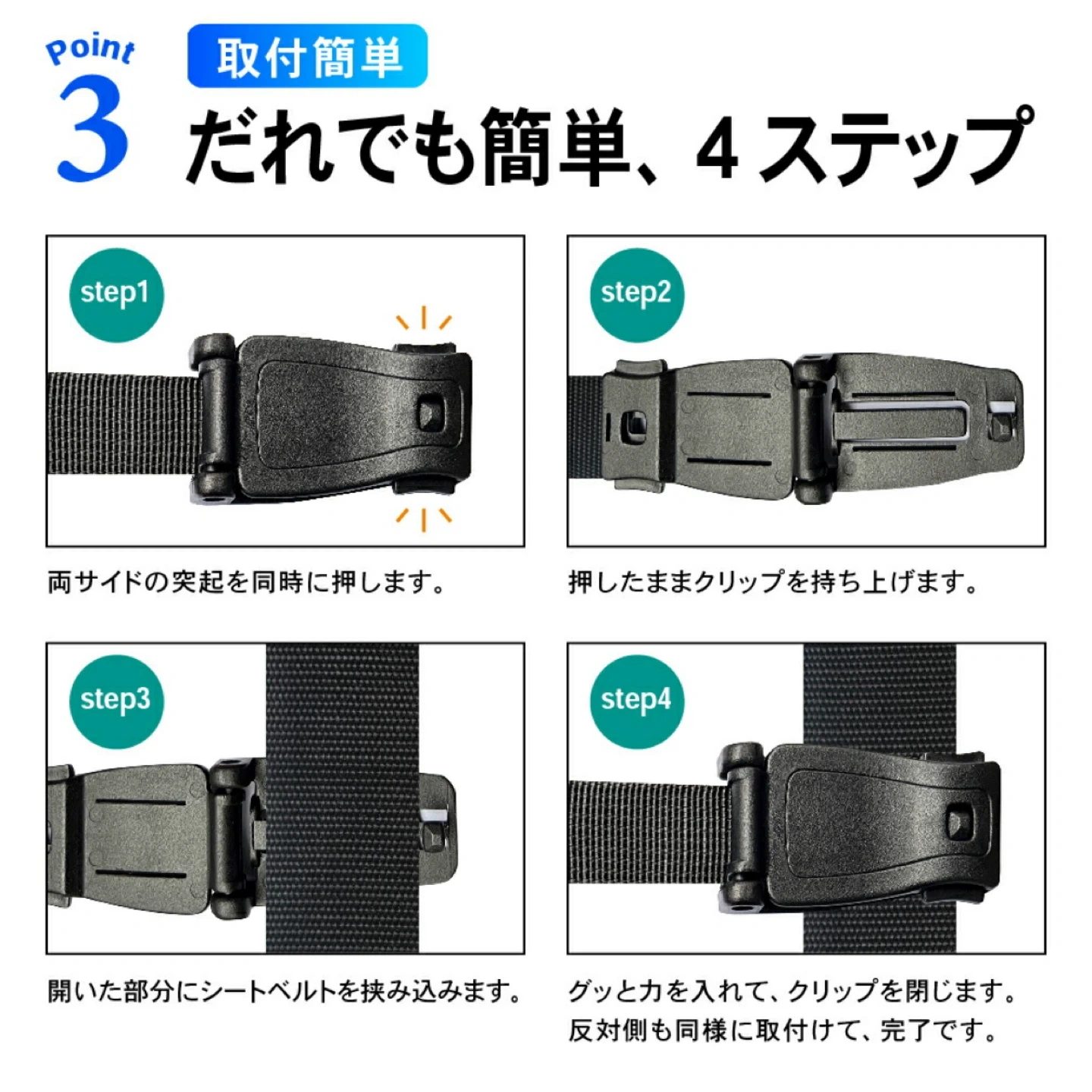 チャイルドシートの抜け出し防止クリップです。 2枚目以降の写真は購入商品のものです。参考にされてください。 レンタカーで遠方に旅行する時に購入しましたが、持参するのを忘れ、開封し説明書等ありませんが、未使用です。