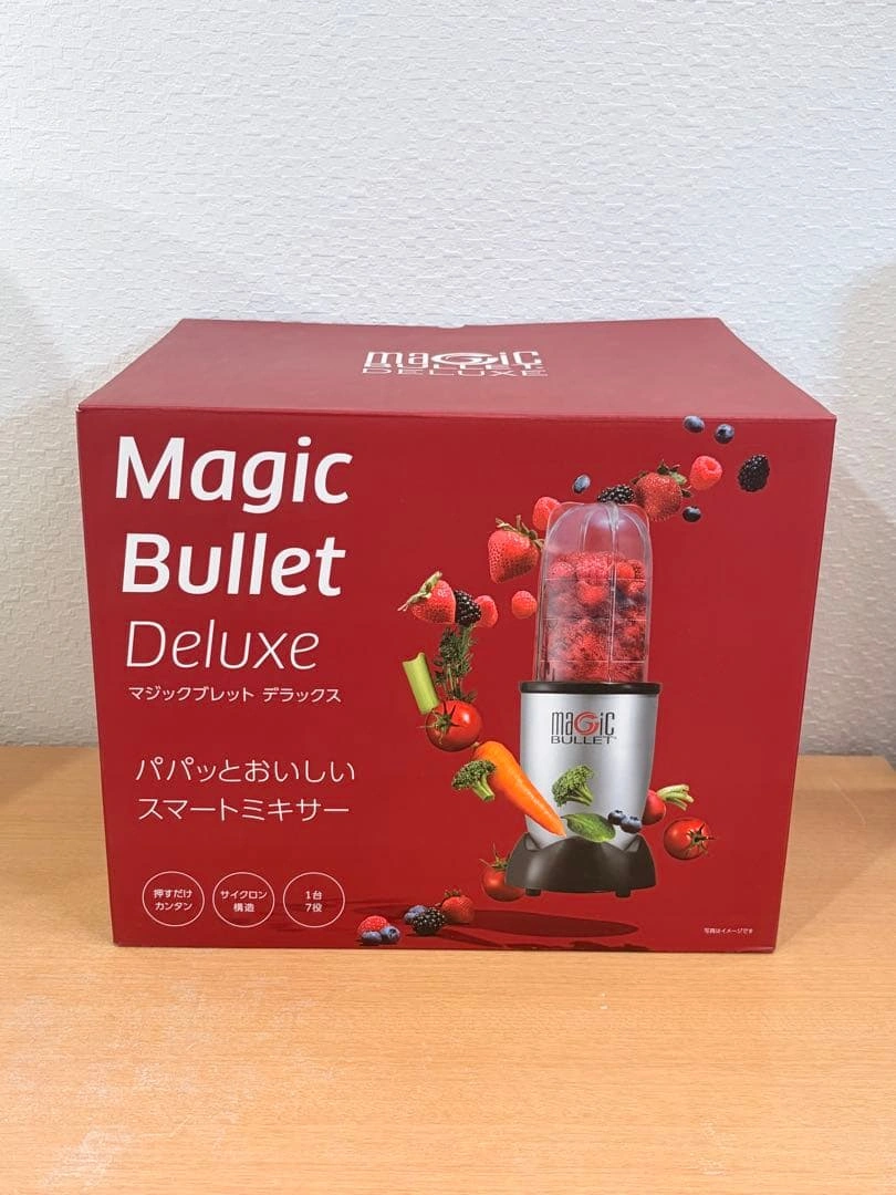 マジックブレット デラックスのスマートミキサーです。 パパッとおいしいジュースやスムージーが作れます。 押すだけのカンタン操作で、1台7役をこなします。 【ブランド】Magic Bullet 【モデル】Deluxe 【カラー】レッド系 【機能】スマートミキサー、1台7役、サイクロン構造 付属品完備。 箱にはダメージがあります。 未使用品ですが、自宅保管のため、神経質な方はご遠慮ください。 【セット購入】 替え刃を別で出品しております。 クロスブレードとのセット購入で10200円となります。