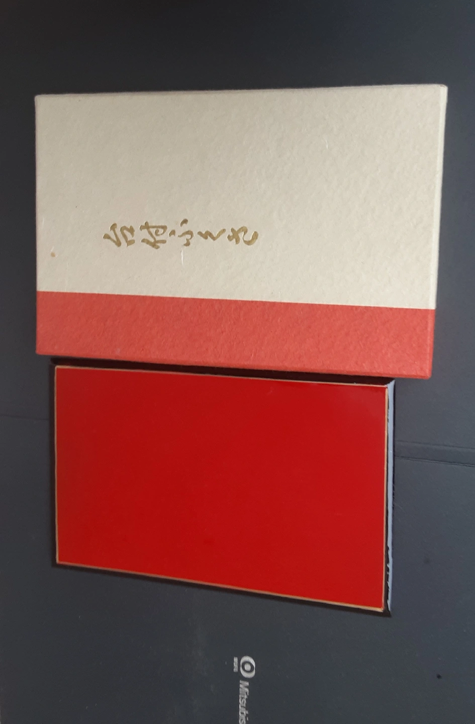約19×12cm 台の板は、塗り物で、赤と緑ががった灰色の両面使い。光にかざすと、かすかに、傷があります。 実物をよくご覧になって納得されたらお願いします。無理強いはしません。バス23系「萱場公園入口」近です。