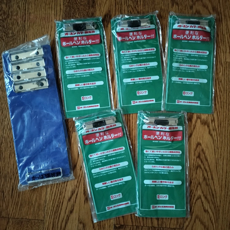 未使用品 緑のボールペンホルダー付きクリップボード、青の会計伝票バインダー10個セット - カラー: 青、緑 - 数量: 10個セット(緑×5個、青×5個) - タイプ: 緑のボールペンホルダー付伝票クリップボードとボールペンホルダー無しのタイプの青の会計伝票クリップボード ※青はボールペンホルダー無しになります! 青のクリップ部分に傷?汚れ ?有り。 自宅にて長期保管の為、その点ご理解頂ける方のみお願い致します。 ご覧いただきありがとうございます。 会計 伝票 書類整理 昭和レトロ グリーン、ブルー 伝票ホルダー