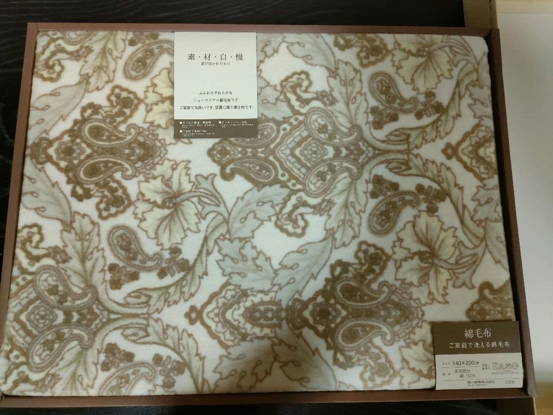 ご覧いただきありがとうございます。 花柄デザインの140cm x 200cm綿100%毛布です。 未使用品です。 外箱に黄ばみやテープ跡があります。 - ブランド: コットンケット - 素材: 綿100% - サイズ: 140cm x 200cm - デザイン: 花柄 長期自宅保管にご理解の上、ご購入いただけると幸いです。 ※箱付きでのお渡し予定ですが、外箱が不要の場合はお申し付けください。