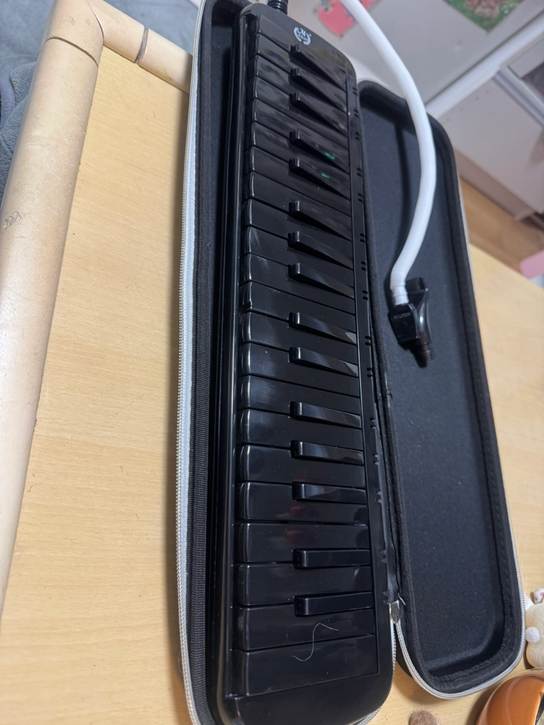 未使用の37キーの鍵盤ハーモニカです。 お色はオールブラック キャリングケース付きです。 吹き口の長い方ですが、保管上の問題で根元が少し変形しておりますので、ご理解くださいませ。 ファミリーマート登戸郵便局西店まで来てくださる方、よろしくお願いいたします。