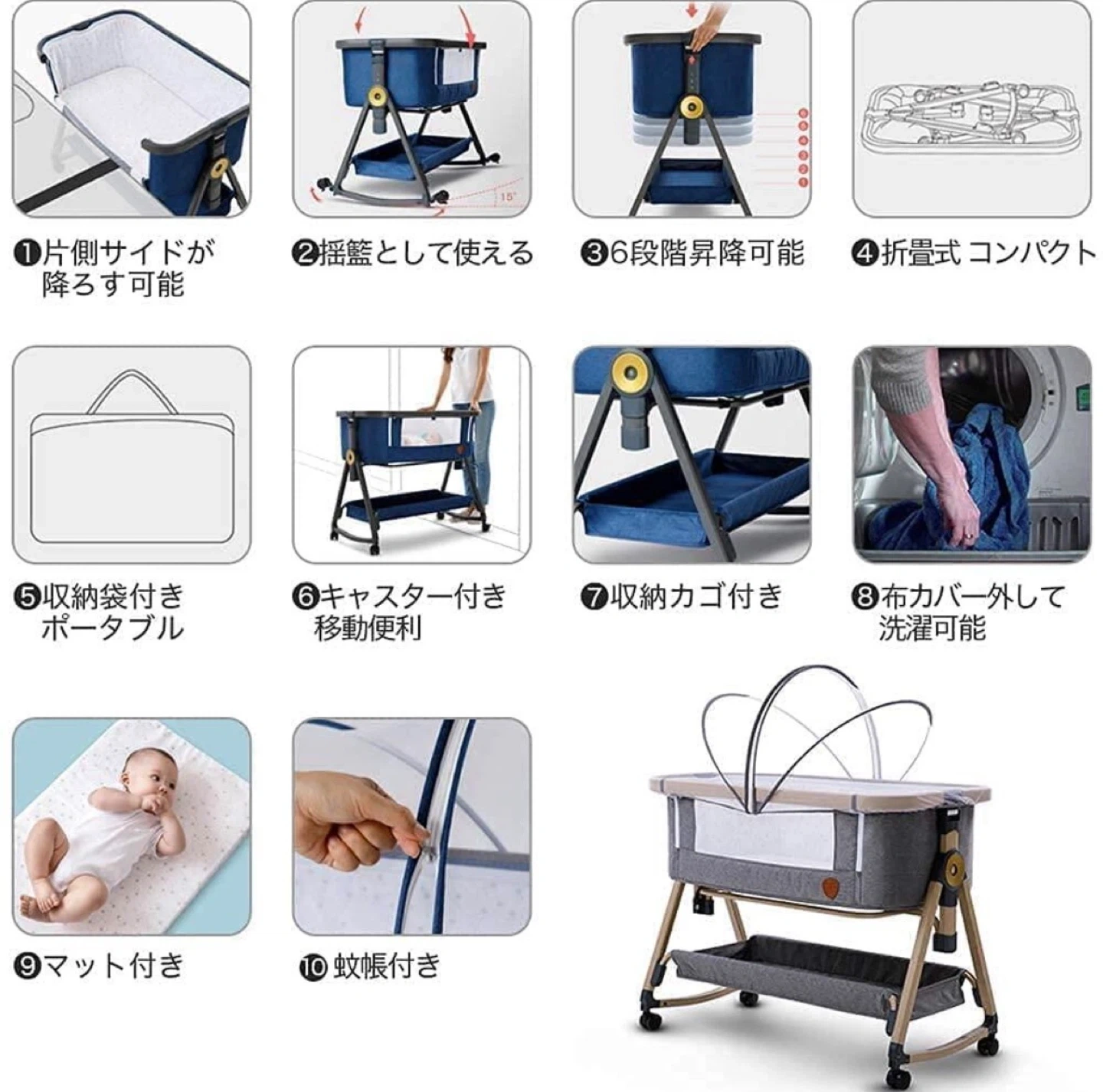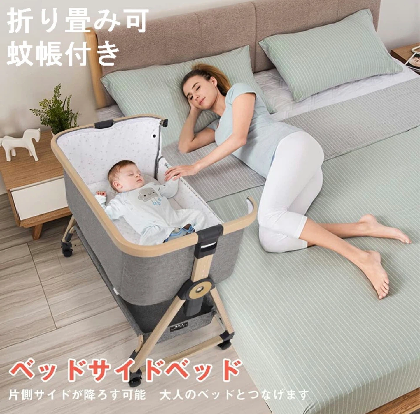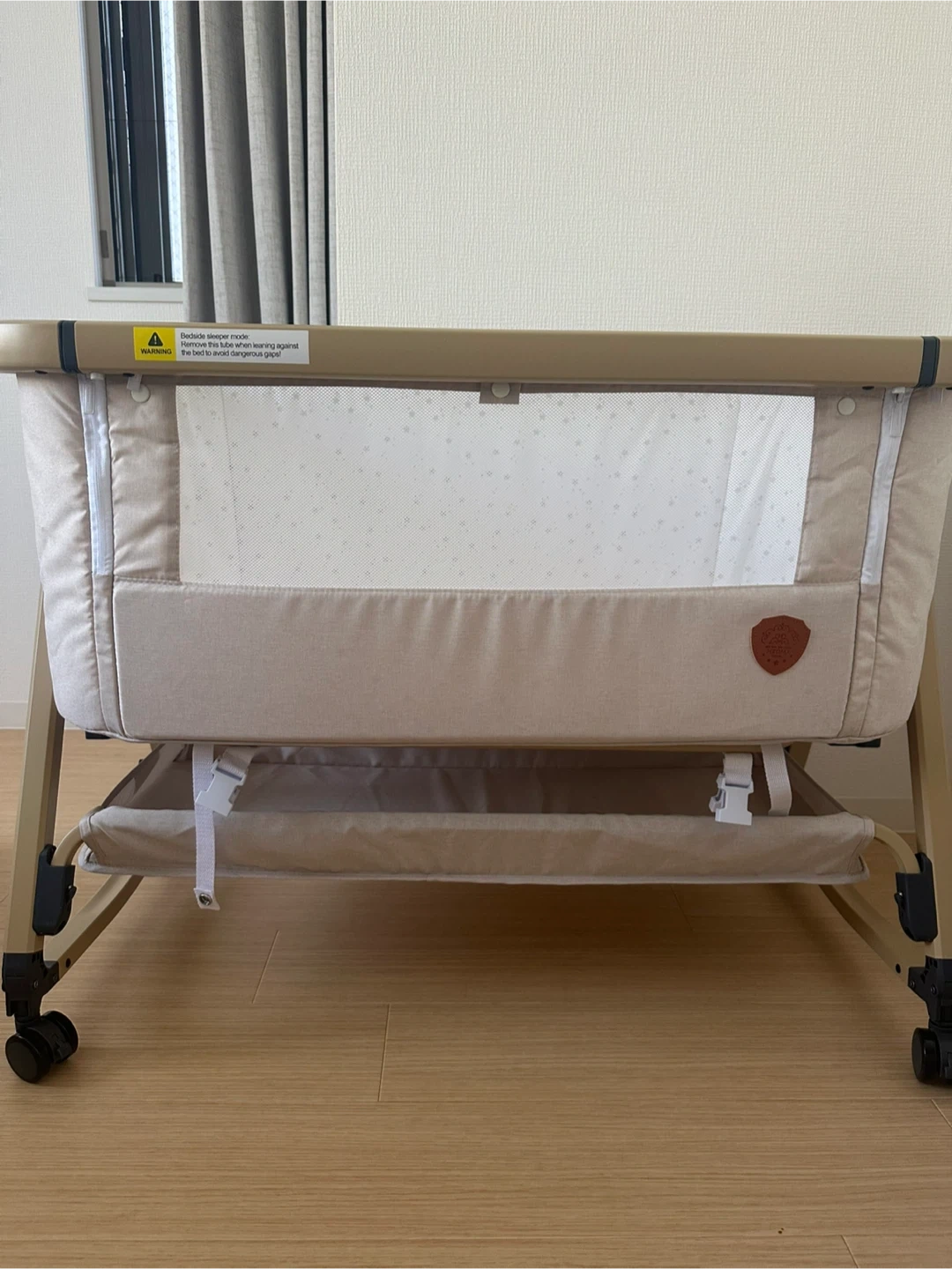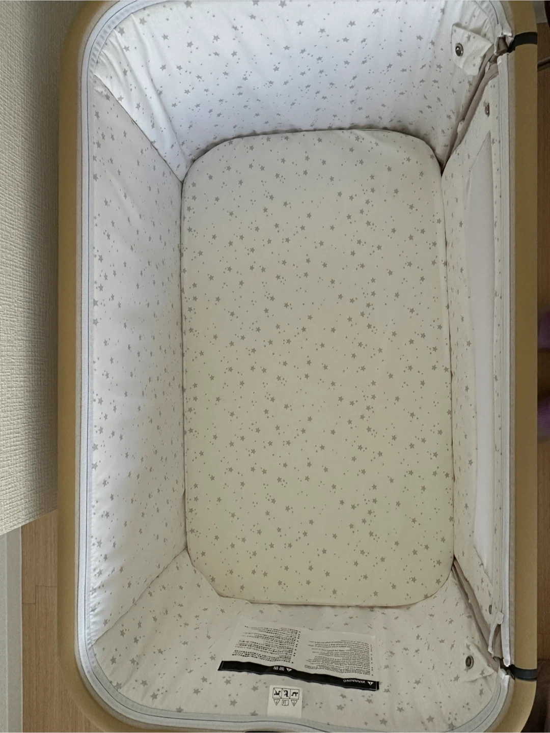 19,880円で購入しましたが、知人からベッドを頂いてそちらを使っているので全く使っておらず、お譲りを検討しています。 組み立てはしましたが、ご希望に合わせて畳んでお譲りします。 購入サイトによると体重制限をクリアしたら3歳まで使用できるそうです。 ⸻ 🔧 商品仕様(メーカー/販売サイトより) • 対象年齢:0か月〜36か月(メーカー情報) • 素材:高炭素鋼+綿 • 展開サイズ:92 × 54 × 82 cm • 収納時サイズ:92 × 54 × 15 cm • 重さ:約8kg • 付属品:マットレス・蚊帳・固定ベルトなど 🌟 このベビーベッドの魅力ポイント • 添い寝タイプ:大人のベッドと高さをぴったり合わせられる6段階調整が可能。夜間の寝かしつけやミルク後も安心感があります。 • 多機能設計:ゆりかごモードに変形でき、キャスター付きなのでお部屋の中で移動もラク。 • 省スペース&持ち運びに便利:折りたたむとコンパクトになり、収納や帰省時にも使いやすい構造です。 • 収納力あり:ベッド下に収納かごがついていて、おむつ・ガーゼ・小物などまとめて置けます。 • クリーンに使える:カバーは取り外せて洗濯可能。衛生面も安心です。 • 角度調節:ベッドをほんの少し傾けられるので、ミルクの吐き戻しが心配な赤ちゃんにも配慮された設計。 ⸻ ※他のフリマサービスにも出店していますのでそちらで先にお譲り先が決まってしまった際にはお取引ができない可能性があります。予めご了承ください。