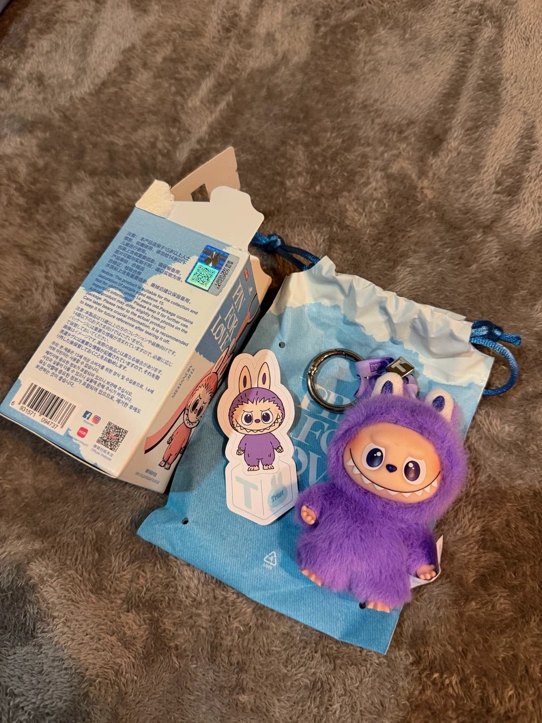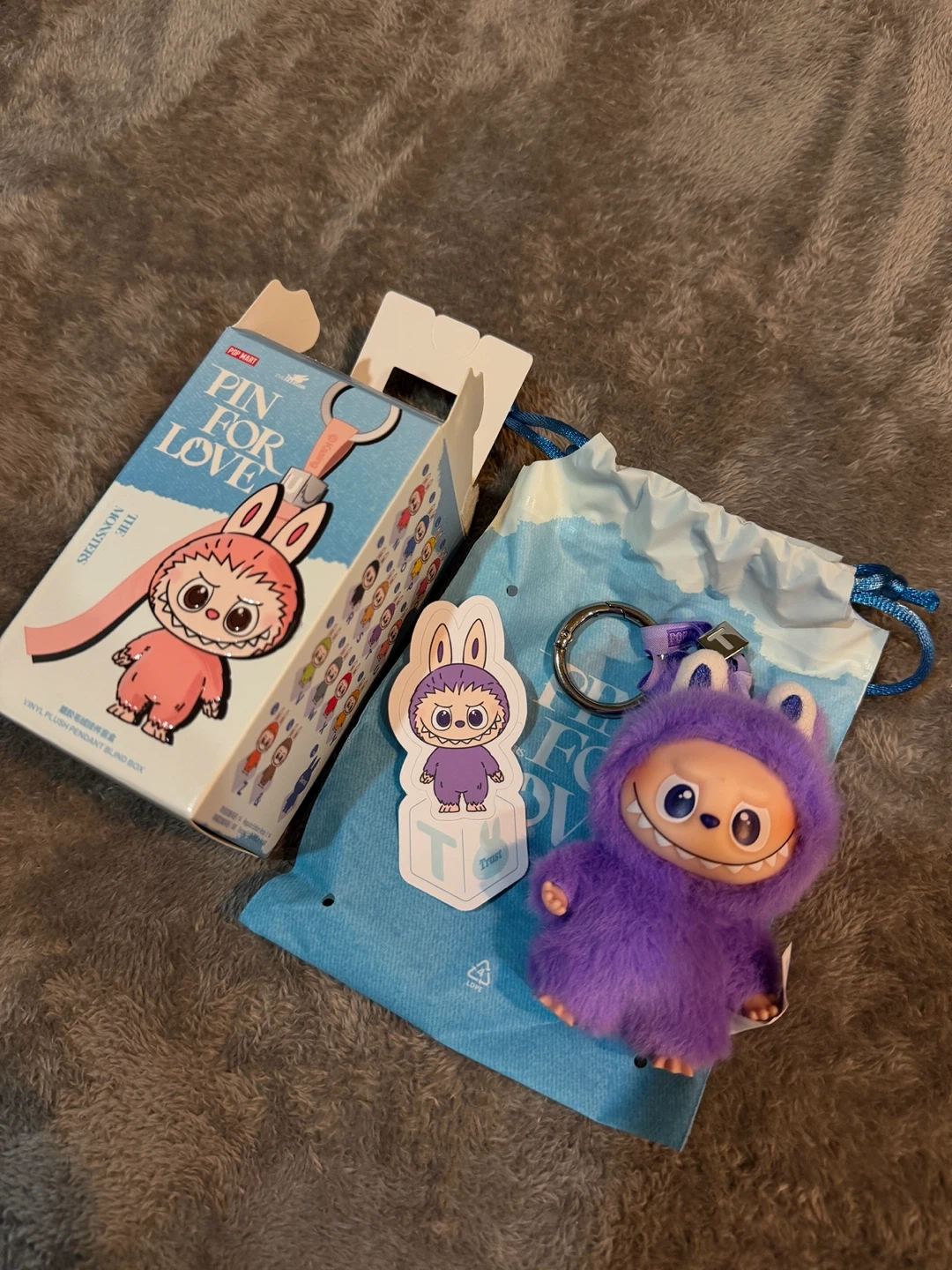 THE MONSTERSのキーホルダーです。 ・付属品:箱、袋、ステッカー ・状態:未使用に近い ・色:紫 ラブブ LABUBU PIN FOR LOVE 【T】 店頭でアソート購入しました。 偽物の場合は10倍で保証します。 受け渡し場所は新橋一丁目または赤羽です。