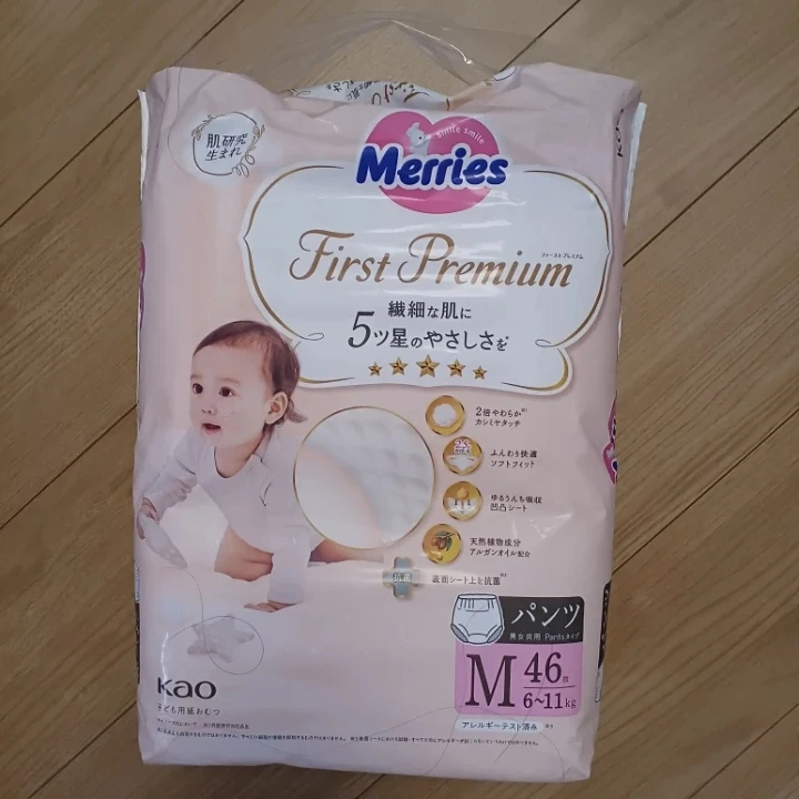 メリーズのファーストプレミアム、Mサイズのおむつです。 未開封の新品。 夫が先月サイズを間違えて購入しました…(;_;) ・ブランド:メリーズ ・商品:おむつ ・サイズ:M(6〜11kg)