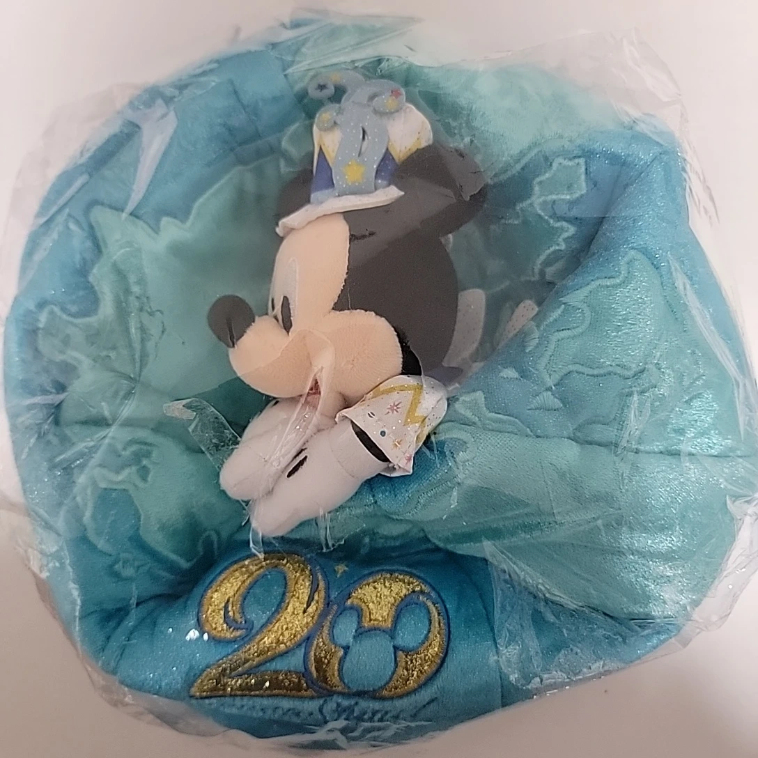 ミッキーマウスの20周年記念ぬいぐるみ付き収納ケースです。 ・デザイン:ミッキーマウス、20周年のロゴ ・色:水色、ゴールド ・状態:新品未使用品 ご不明点があればお気軽にお尋ねください。