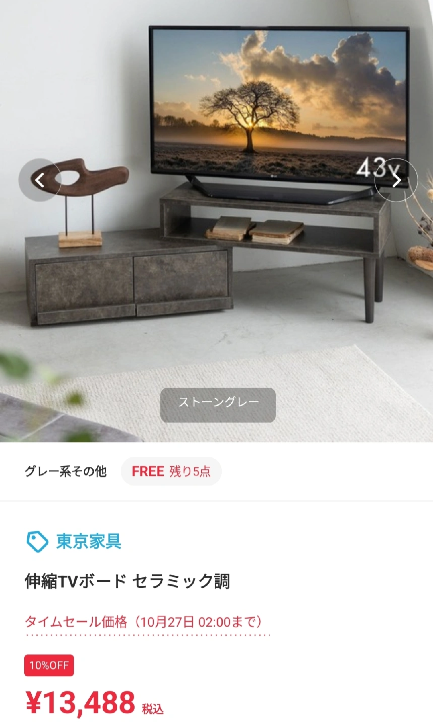 東京家具の伸縮TVボード セラミック調です 【情報】 ブランド:東京家具 種類:伸縮TVボード 色:ストーングレー 【状態】 特に目立つ傷や汚れは見当たりません 中古品であることご了承ください 組み立てた状態で引き渡しになります