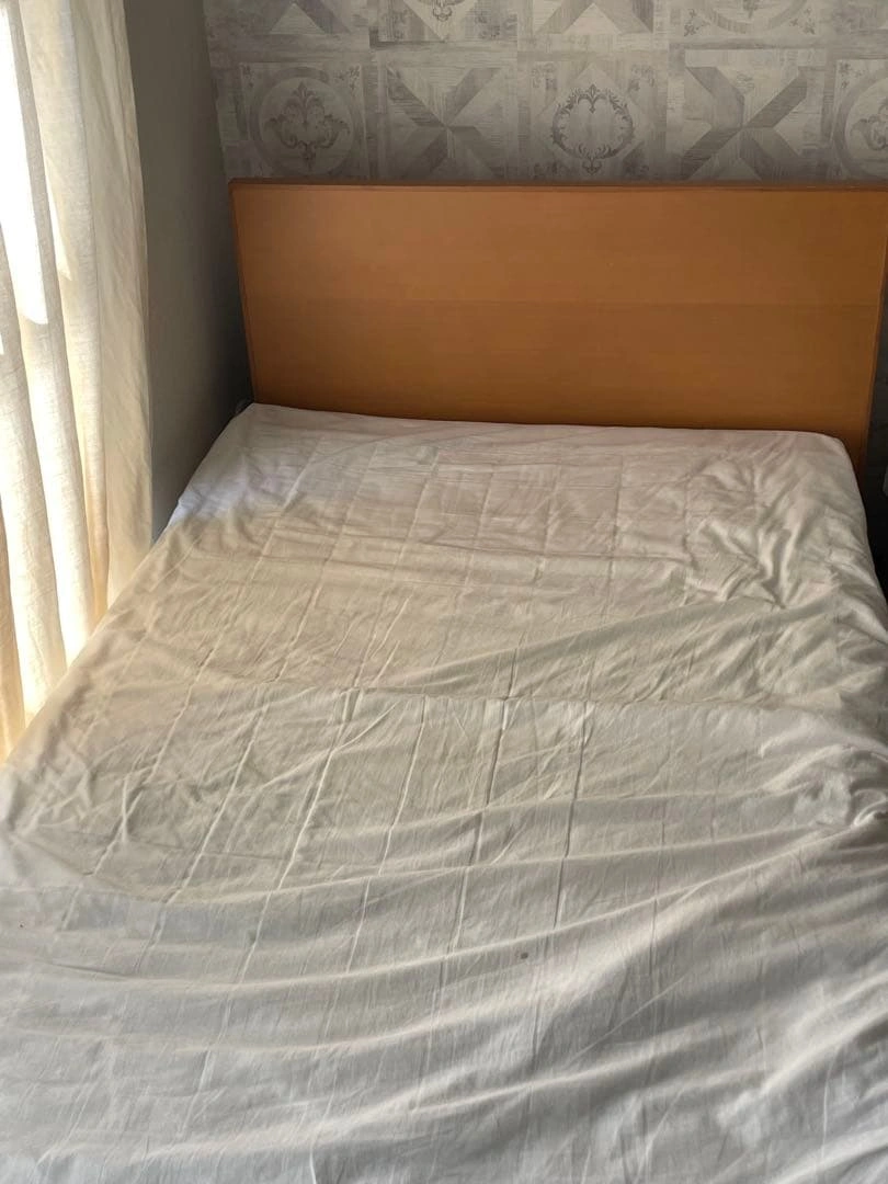 シングルサイズの木製ベッド、ヘッドボード付きです。 マットレスは処分済みのため、フレームのみとなります。 - ベッドのサイズ: シングル - ヘッドボードの素材: 木製 ご希望の方はお気軽にご連絡ください。