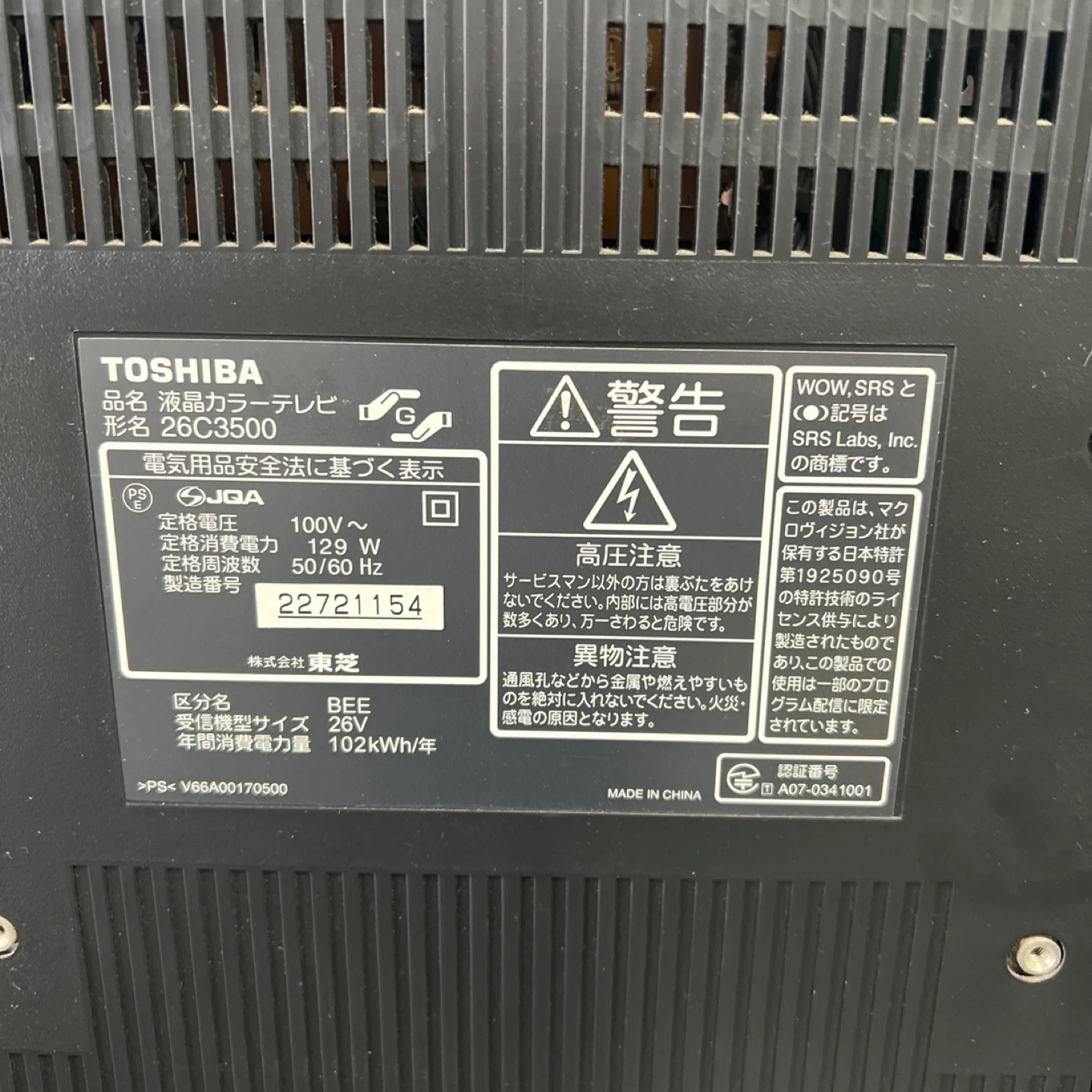 東芝26型 液晶カラーテレビ 26インチ REGZA 26C3500 リモコン付