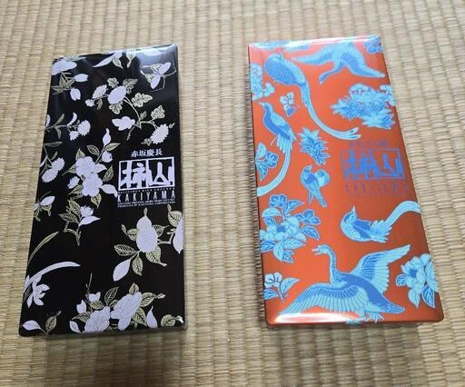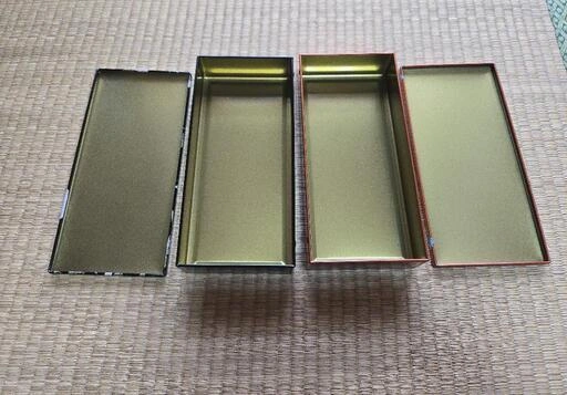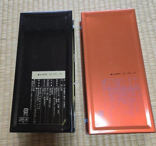 赤坂慶長 柿山の空き缶です。 少し前の物なので、もう手に入らない希少なデザインかと思います。 黒い方内部に突起があります。うっすら汚れがあります(写真では見ずらいです)。 自宅保管品のため、ご理解いただける方のみご購入ください。 サイズ縦約22.3cm×横10.5cm×高さ3.8cm ご希望の方はお気軽にご連絡ください。