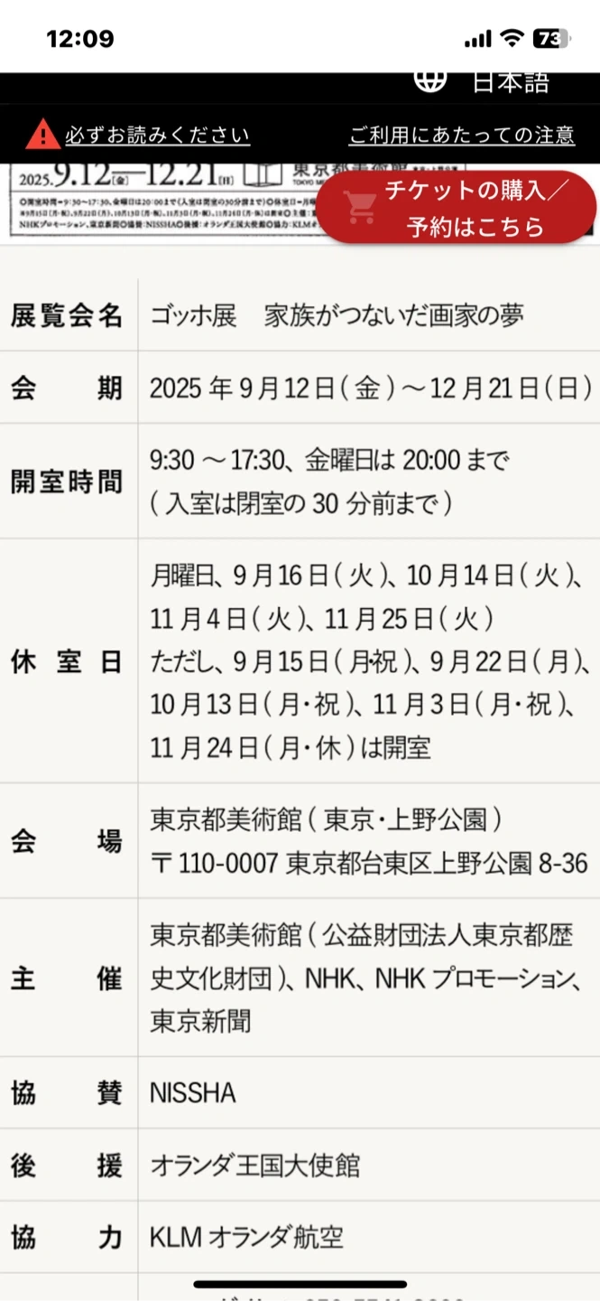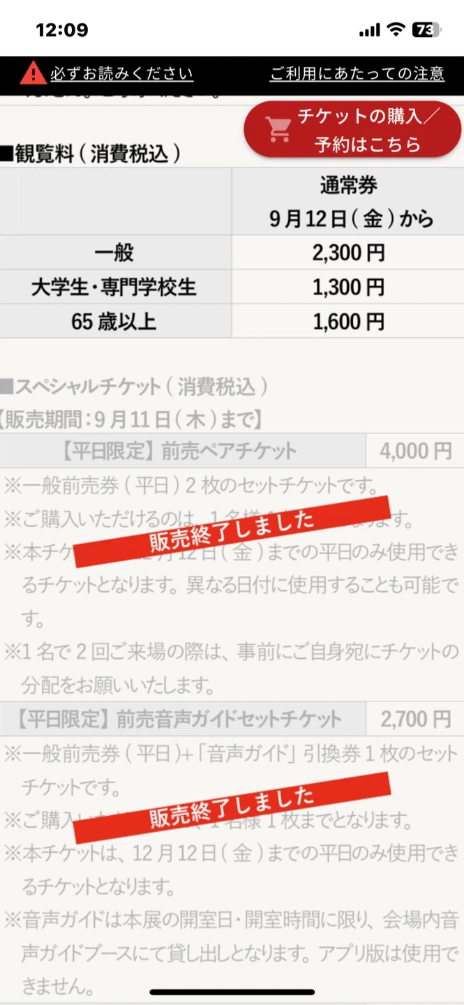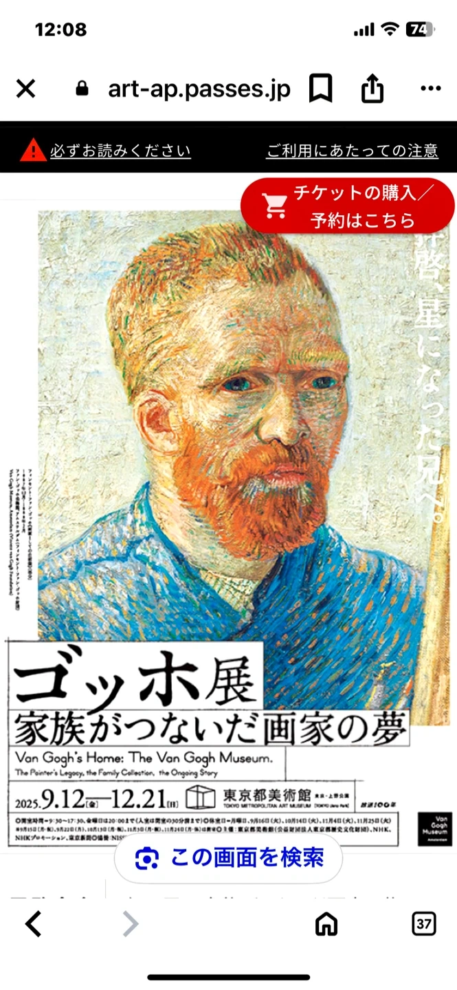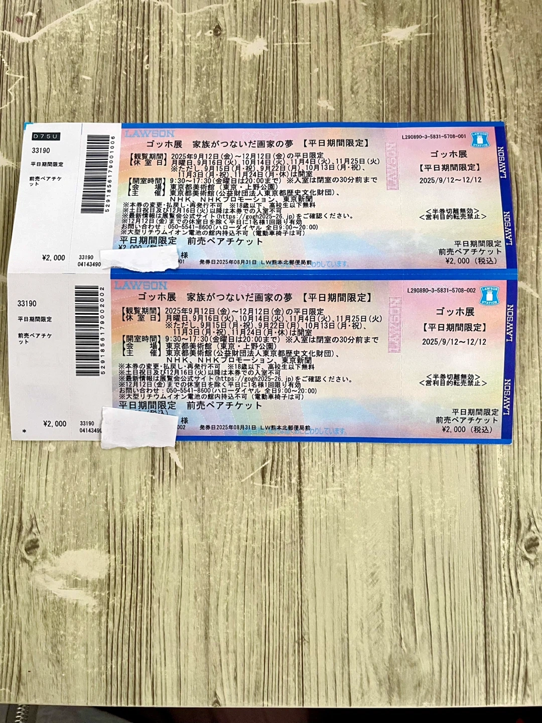 ゴッホ展のペアチケットです ・種類:平日限定 前売りペアチケット ・枚数:2枚 ・会期:2025年9月12日(金)~12月12日(金)の平日 ・会場:東京都美術館 ・定価:2,000円 (税込) x 2枚 = 4,000円 現在ネットでは 定価1枚¥2300で販売中です 〜写真3枚目参照〜 *ペアチケットは販売終了しています ペアで¥3000で いかがでしょうか? お一人¥1500ということになります 上野公園内にある美術館です 12月12日までまだ日にちがあるので なかなか観る機会のない ゴッホの絵画、観に行きませんか? 上野恩賜動物園や、アメ横も 近いので 観光やデートでぜひ 私と一緒に行く予定だった友人が 行けなくなってしまったので どなたかに お譲りすることにしました 受け渡し場所については 柔軟に対応したいと思いますので プロフィールをご一読ください 他にもたくさん出品しております 合わせてご検討ください ご不明点等ございましたら ご連絡ください