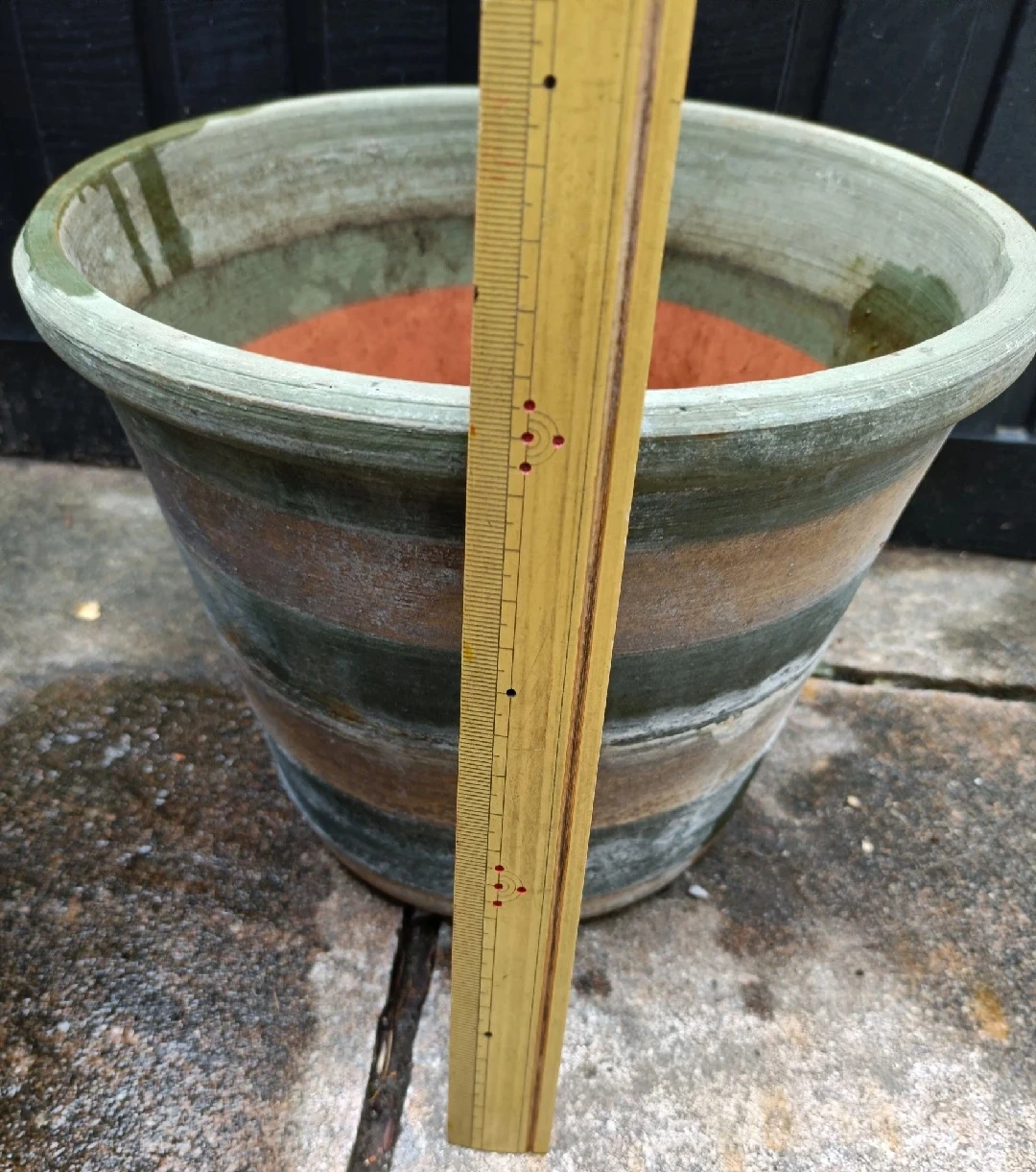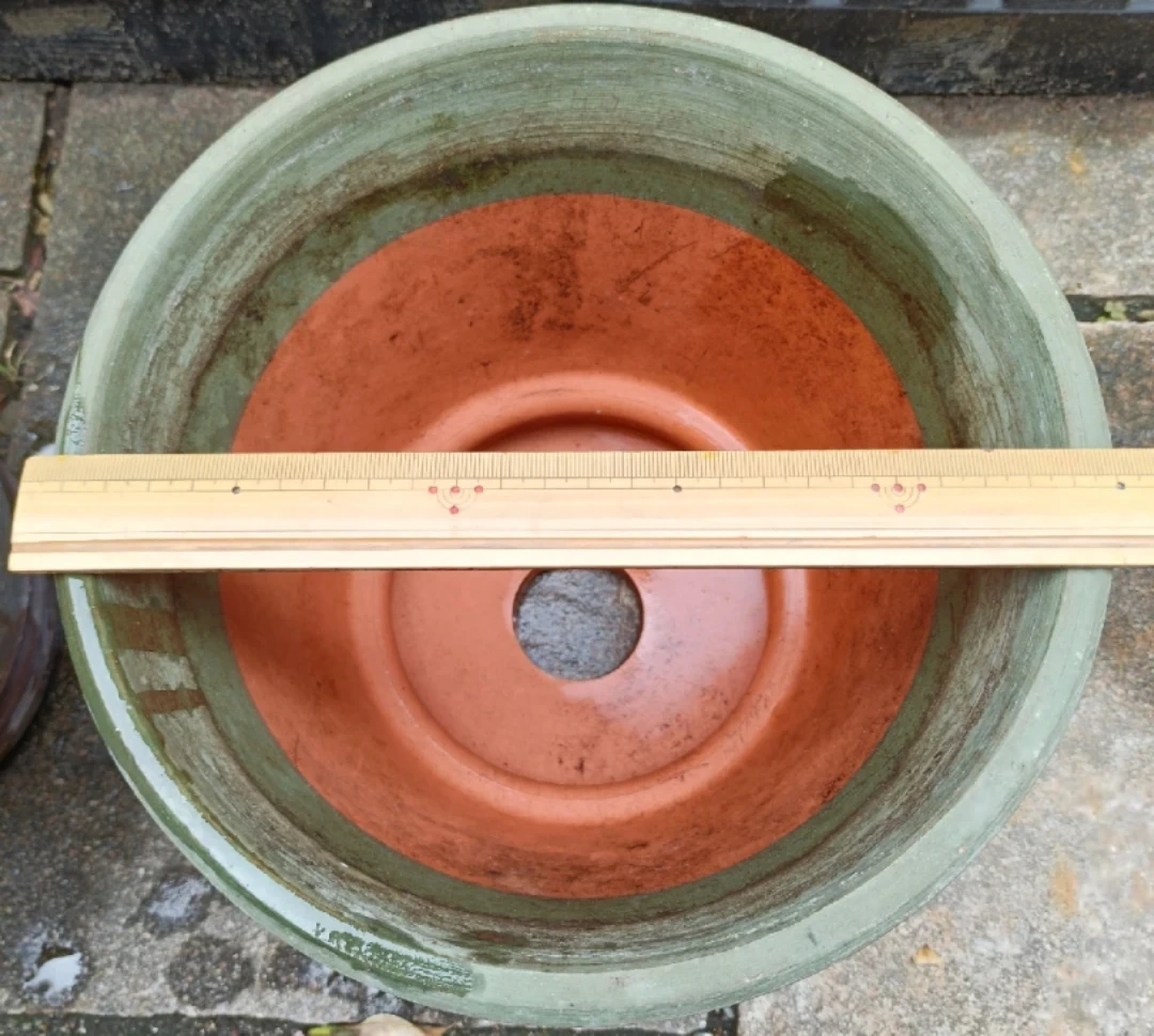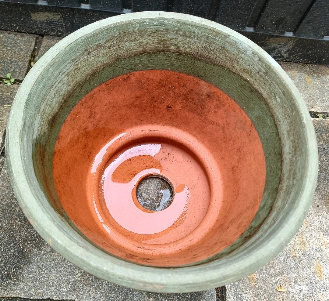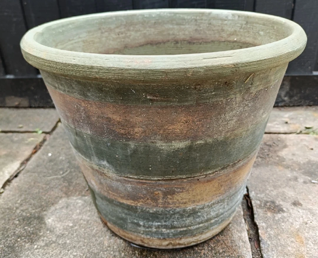 植木鉢です。 ・色:緑、茶色 ・サイズ:高さ約20cm、直径約27cm ・使用感あり 中古品であることご了承ください