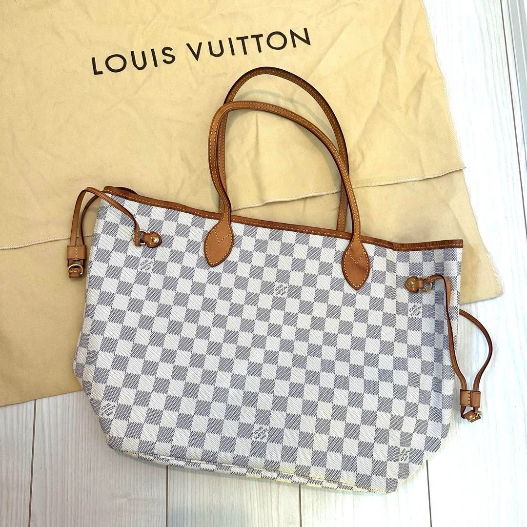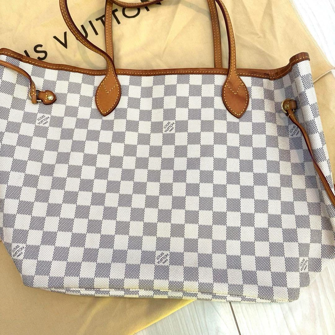 ルイヴィトンの大人気トートバック、ネヴァーフル MM アズール ダミエです。 数回使用しました。外は綺麗ですが中は多少汚れがありますので画像でご確認ください。 両サイドのストラップを絞ると小さめトートになります。 ルイヴィトン ダミエ、ネヴァーフルGM サイズ 32-43cm × 28cm × 17cm ※素人採寸のため多少の誤差はご容赦ください。 付属品:保存袋 ご不明点はお気軽にお問い合わせください。