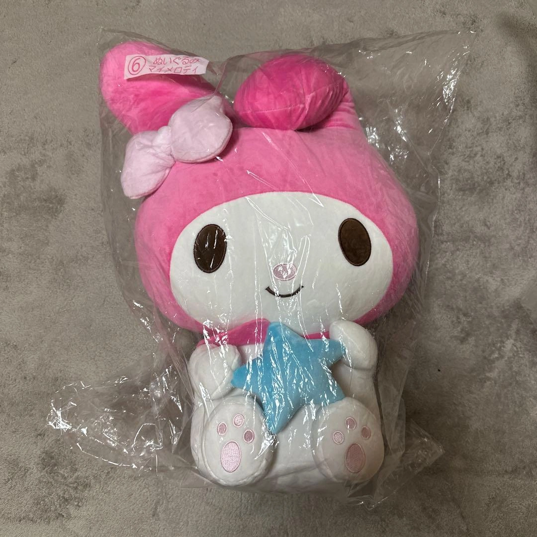 可愛いマイメロディのぬいぐるみです。約60cmのビッグサイズで、ピンク色をしています。 - キャラクター: マイメロディ - 色: ピンク - 素材: ぬいぐるみ - サイズ: 約60cm ご覧いただきありがとうございます。 値下げ交渉致します