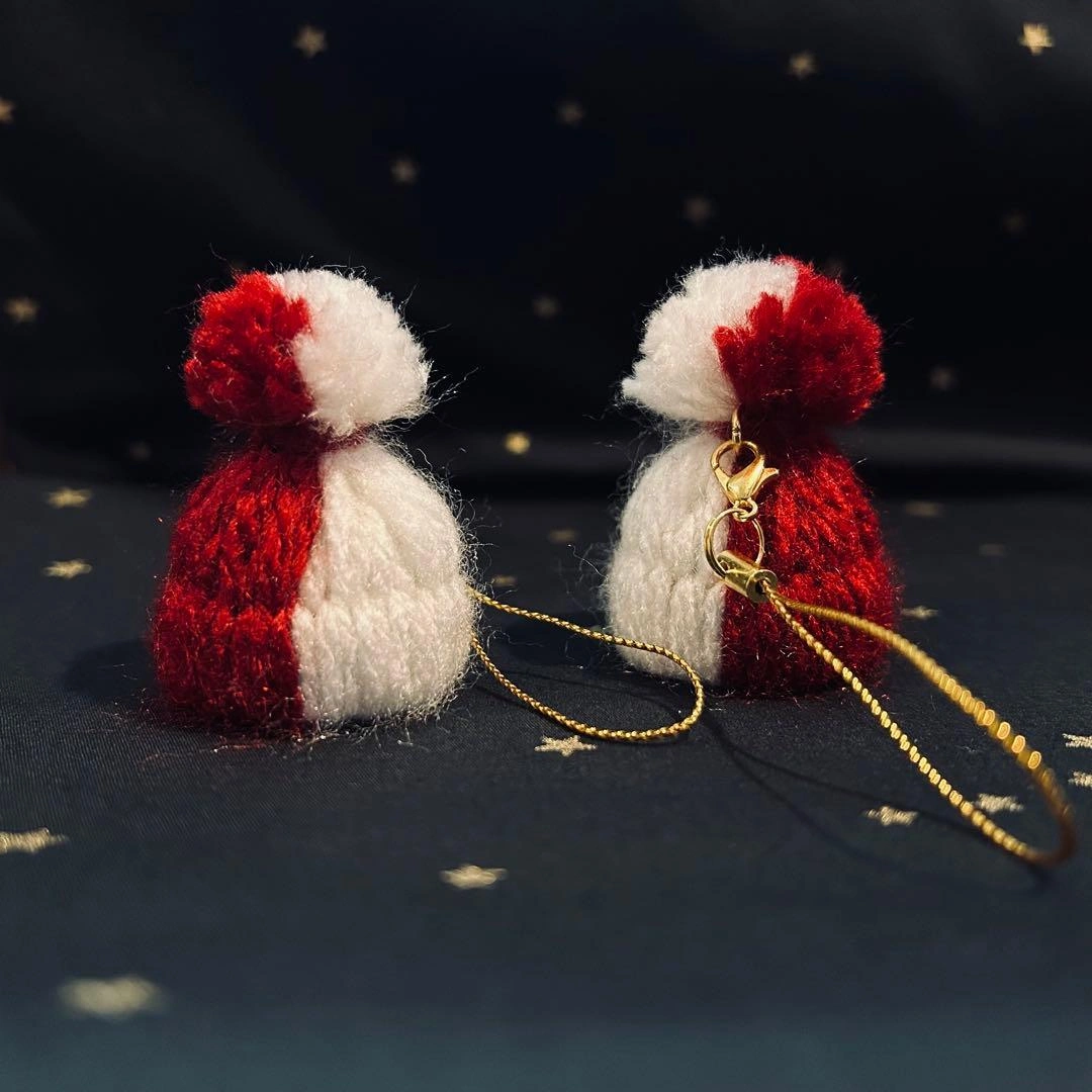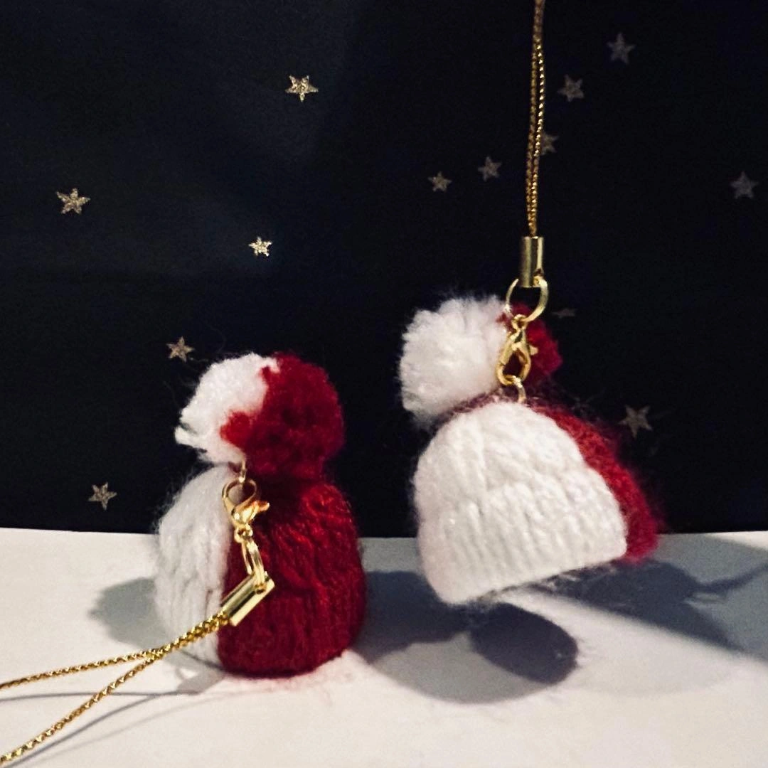 毛糸の帽子チャーム ツートンカラー 2個セット ☆ハンドメイド☆